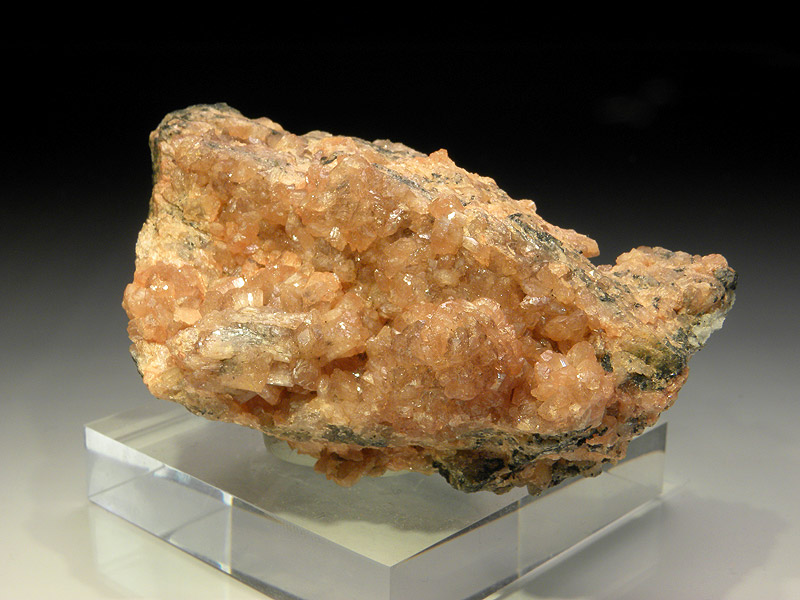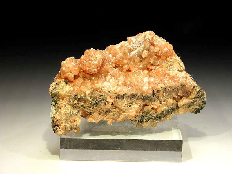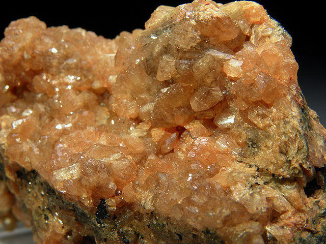Bright well defined of orange-pink Hureaulite xls up to 6-7 cover all the side of the specimen with black Rockbridgeite in association.
