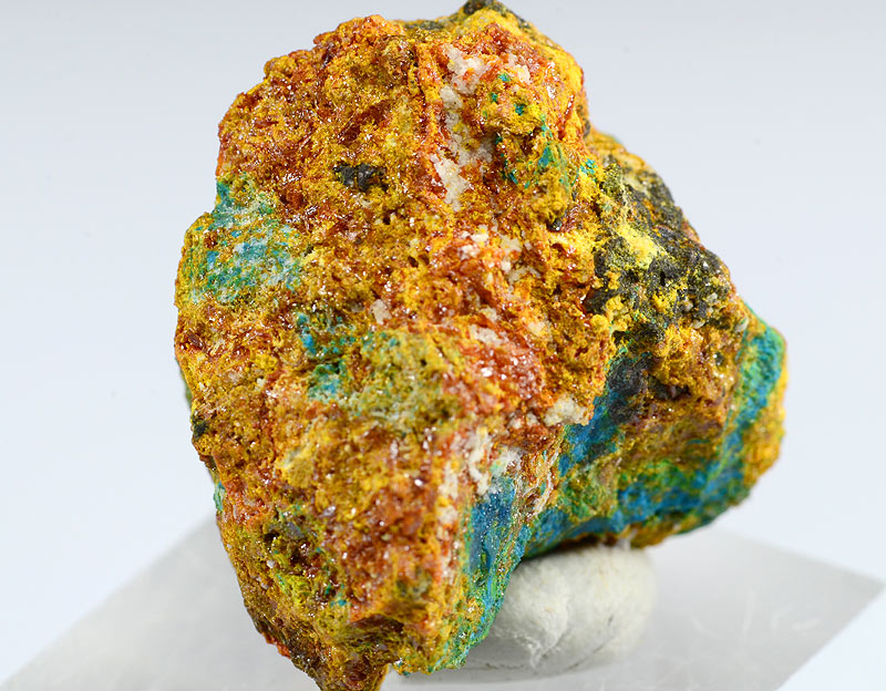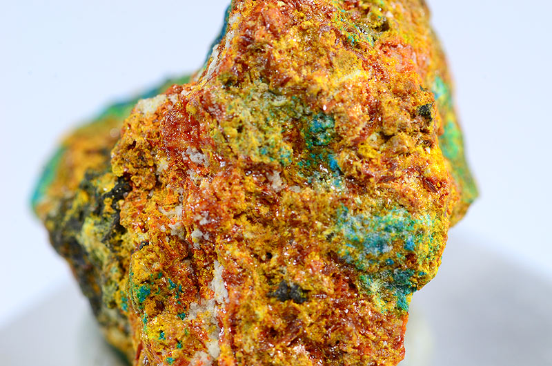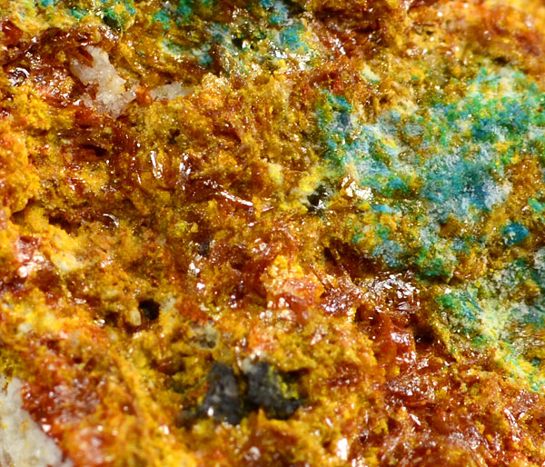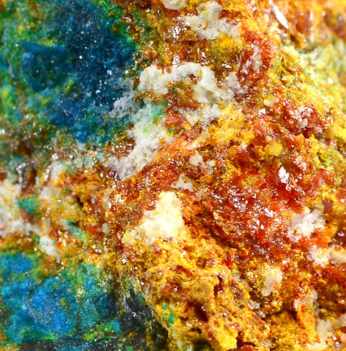 Specimen rich of thin orange honey Schartzembergite xls up to 1 mm with blue Percylite in association.