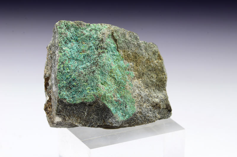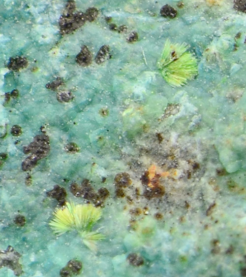 Excellent sample of this rare phosphate with green acicular needles up to 1 mm richly scattered on matrix from the type locality.