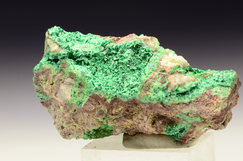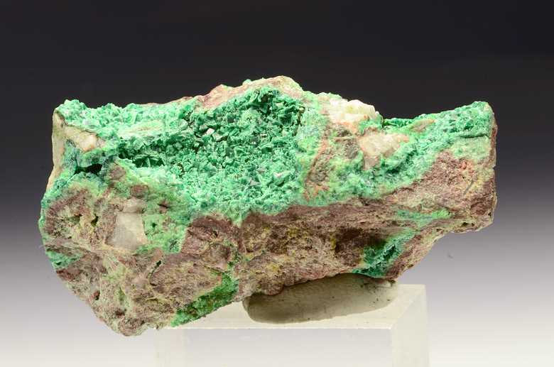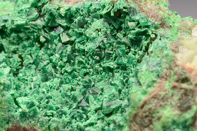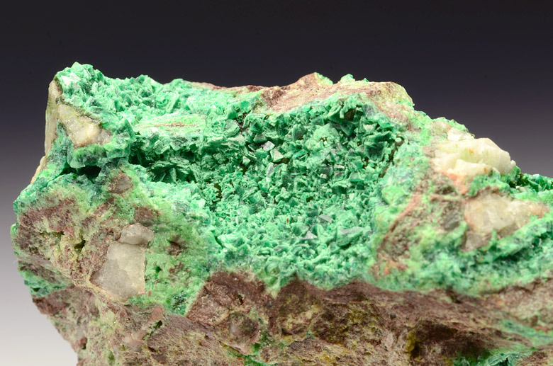 Cluster with bright green well bi-piramidal xls of Cuproadamite on matrix with Olivenite , from the famous Tsumeb mine.