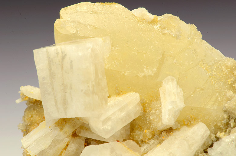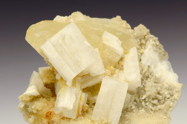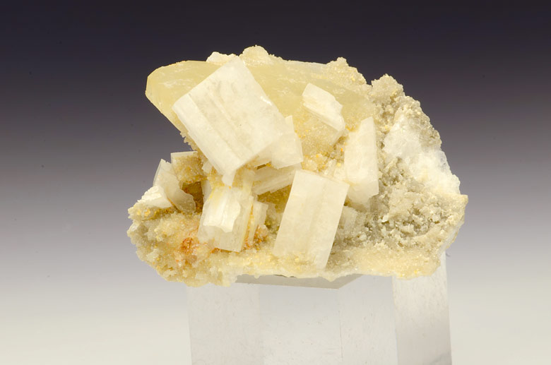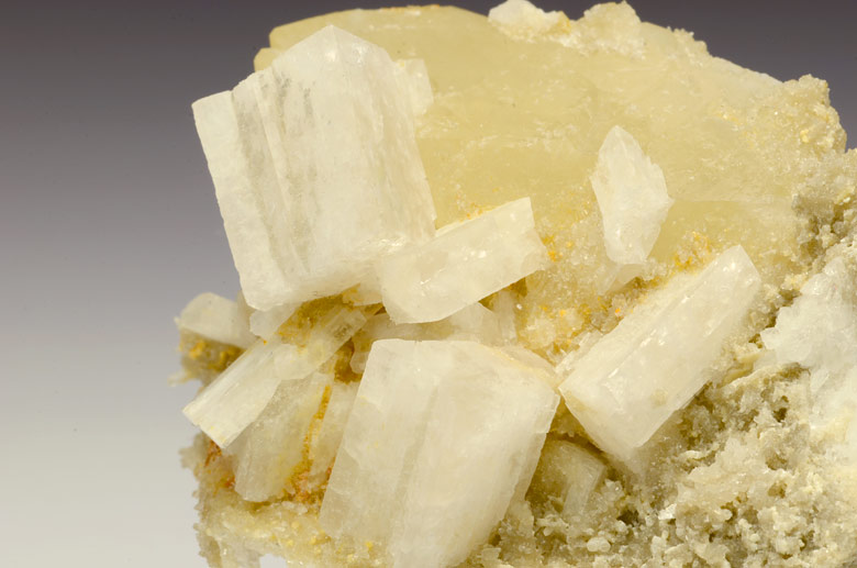 Bright, fully-terminated Hambergite crystals up to 1,5 cm on pegmatite matrix with Citrine Quartz in association.A really fine and uncommon specimen.