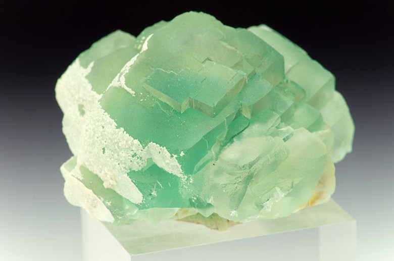 Cluster of stepped Fluorite xls up to 2,5 cm wide with a very good internal green color.Showy.