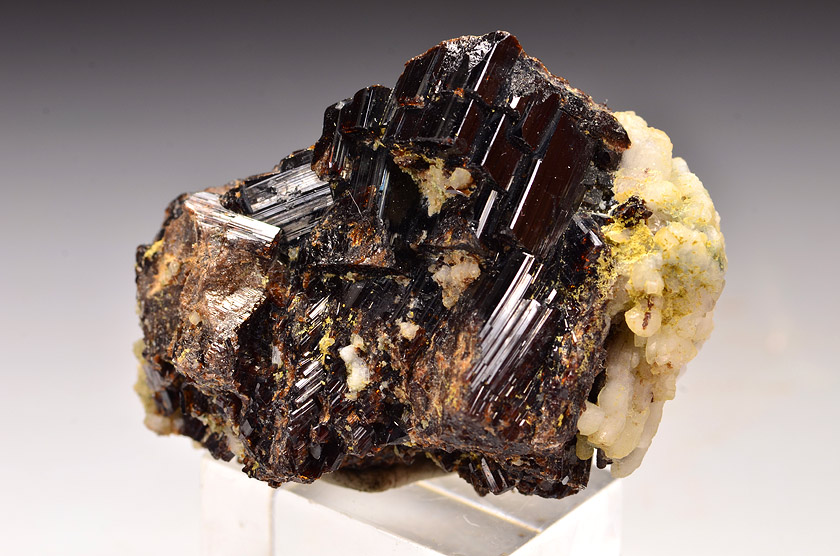 Cluster of bright "root beer" Vesuvianite xls up to 1,5 cm long richly set on rodingite matrix.