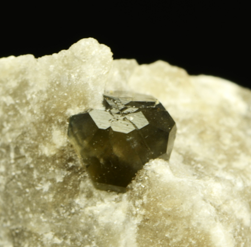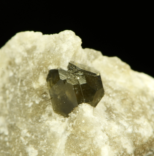 Single cube-octahedral Xl of boracite on massive anidrite matrix. The boracite Xl is deep green in colour, very sharp and with good luster.