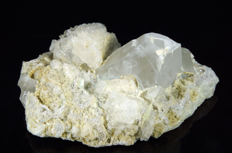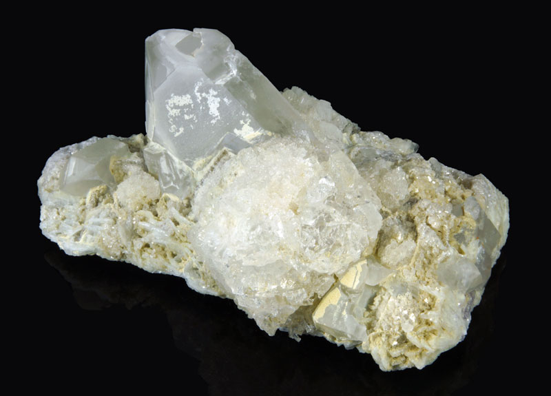 Very nice naturally etched rare pollucite crystals with quartz crystals on matrix.