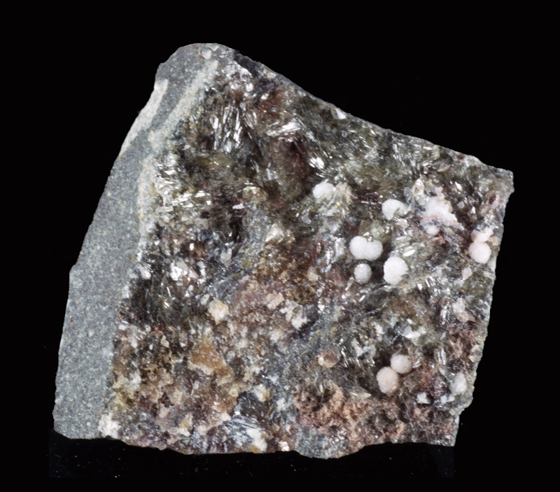 Very nice brown triplite with greenish/black vonsenite and white chabazite.