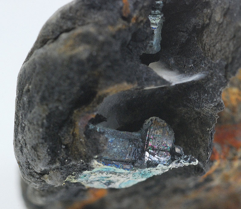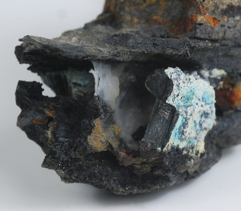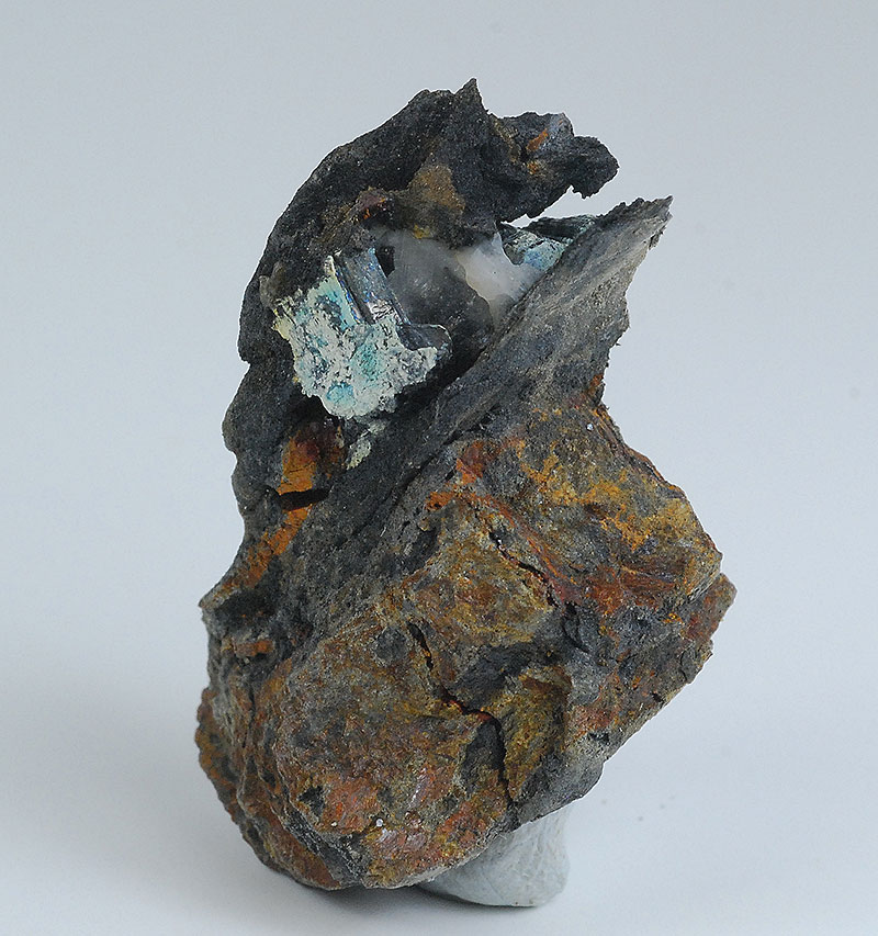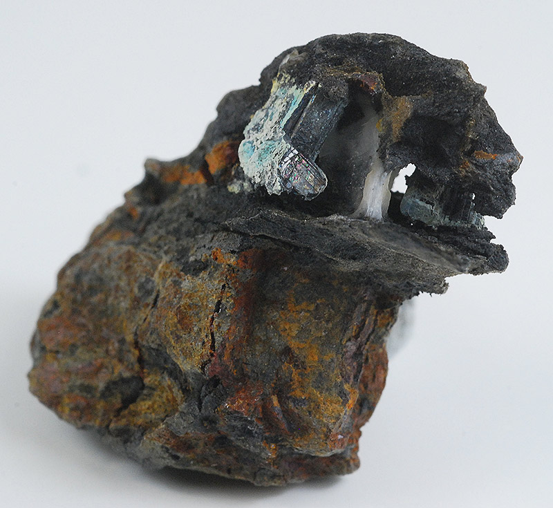 Some black crystals of bournonite are visible inside the vug of this specimen: this specie is not common in this alpine locality, but it's classic !