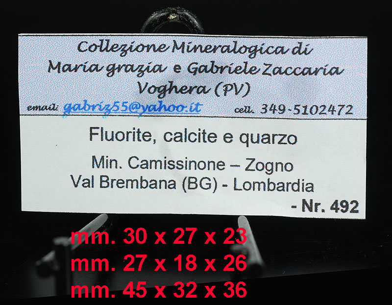 Fluorite, calcite and quartz - Camissinone mine - Zogno - Brembana Valley - Bergamo prov. - Lombardy - Italy