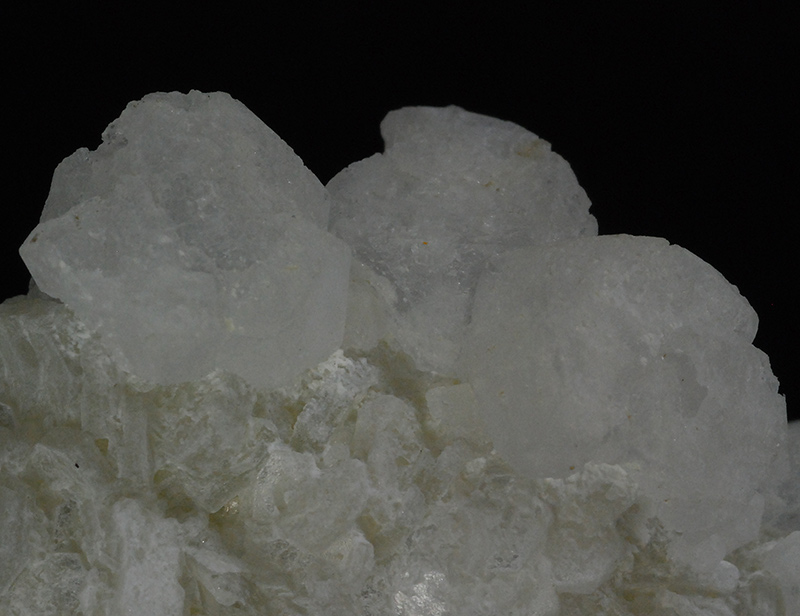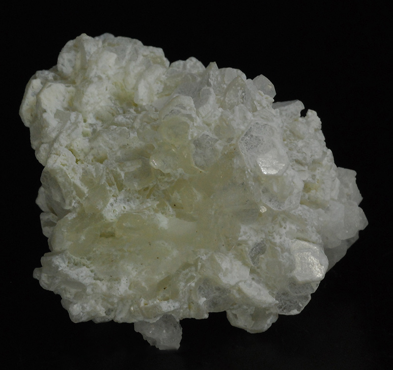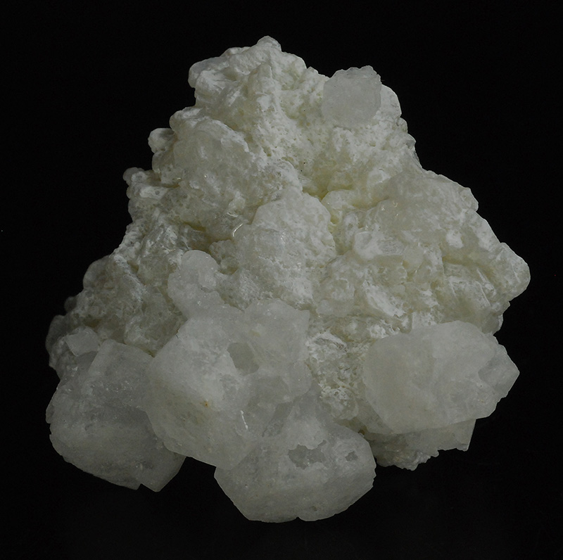 An aggregate completely made up of pollucite crystals, to a small extent covered by a white patina of carbonates.