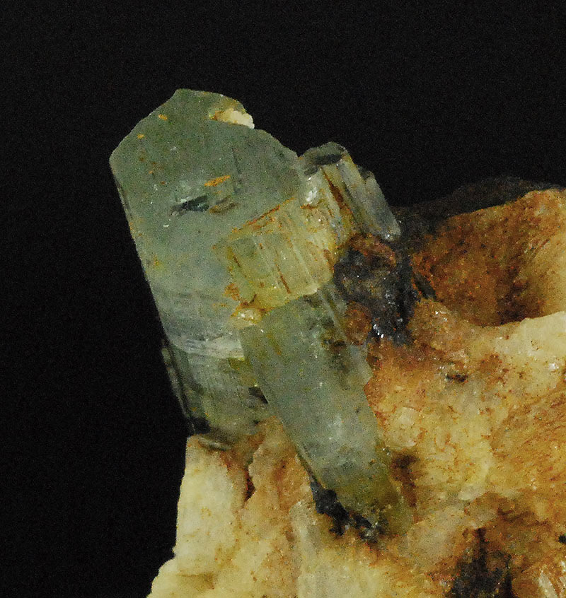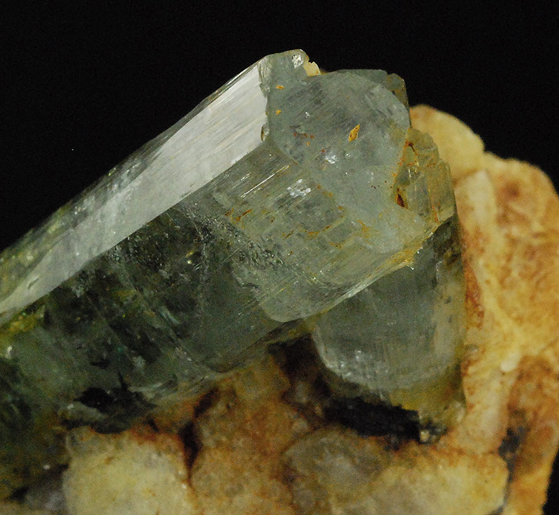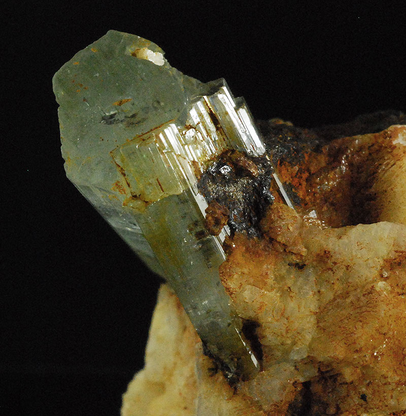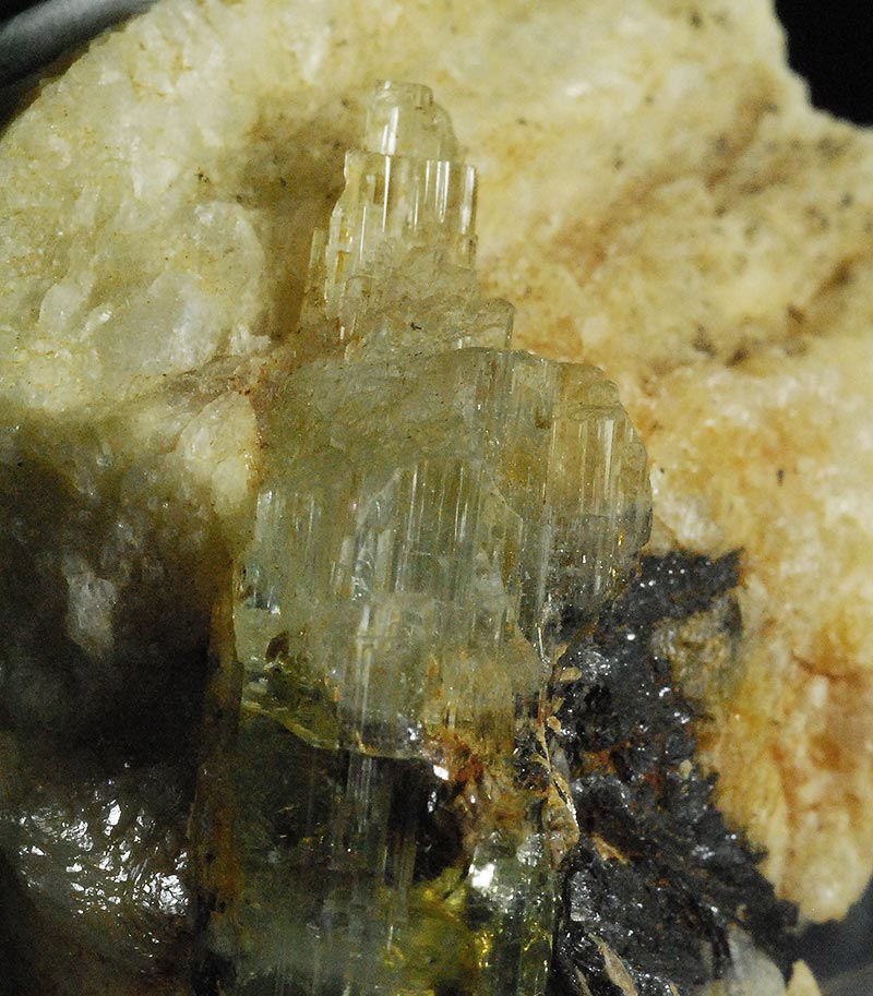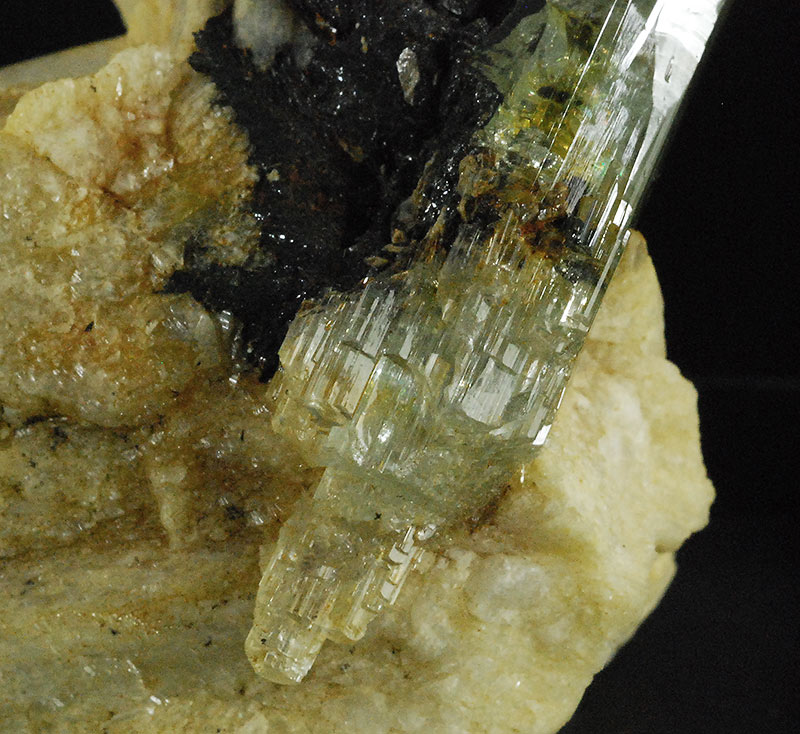 A large, semi-transparent crystal of beryl is stunnong on the matrix of this specimen.