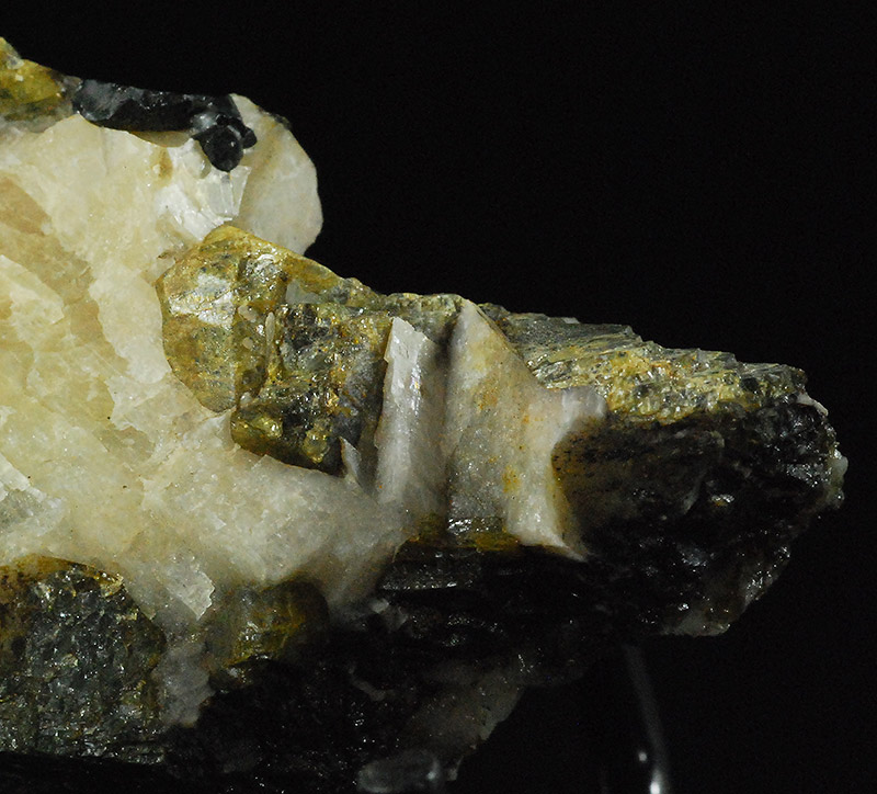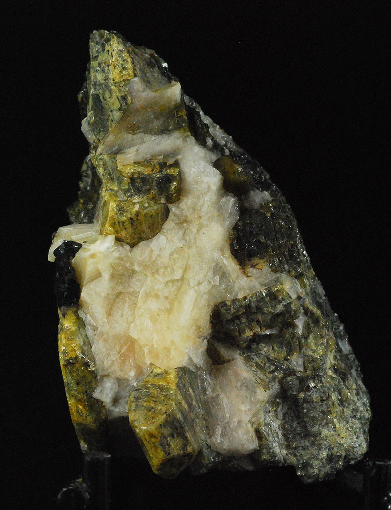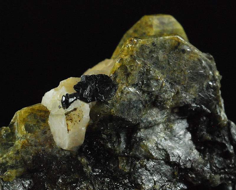Some large and well-formed forsterite crystals are stunning over the matrix of this specimen. The black and incomplete crystals that can be seen are almost certainly spinel residues. Formerly Sandro Maggia's mineralogical collection: no. F-68.