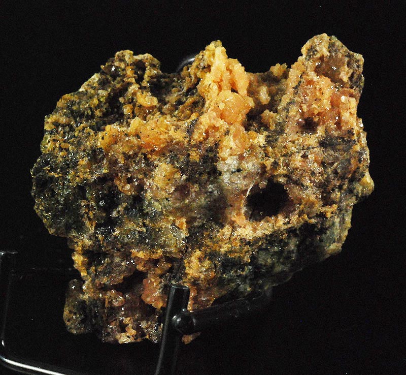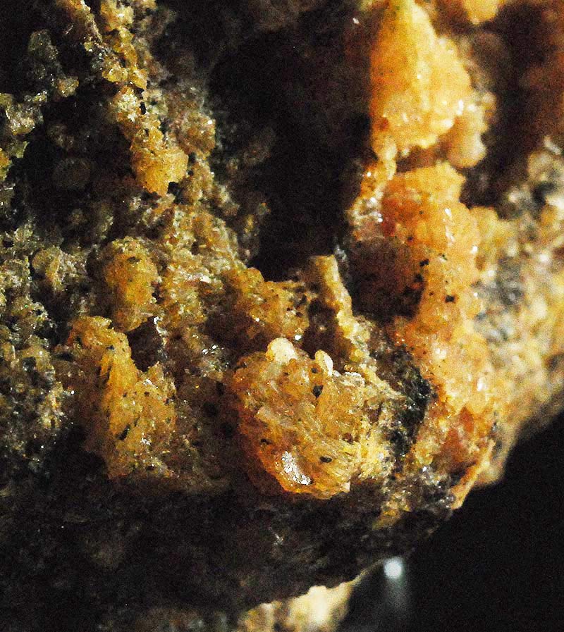 A small encyclopedia of minerals, where however only hureaulite is easily recognizable. Most of the surface of this specimen is covered with orange/light brown crystals of hureaulite. To identify the other minerals you need a magnifying glass and a lot of patience, perhaps using the captions on Mindat of the specimens from this locality. Former mineralogical collection of Sandro Maggia: no. H-6.