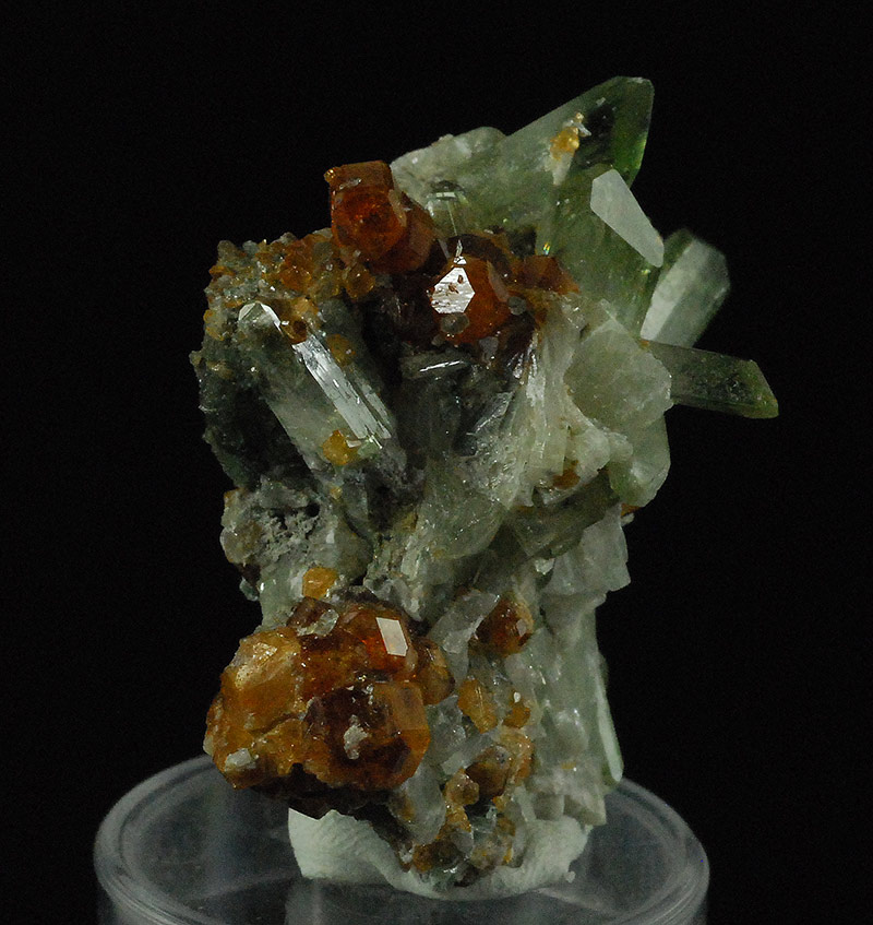 A little Alpine gem from a place famous for the high quality of the samples that were extracted here. Semi-transparent crystals of greenish diopside are together with brown/reddish garnets. A truly remarkable quality sample. Former mineralogical collection of Sandro Maggia: no. D-96.