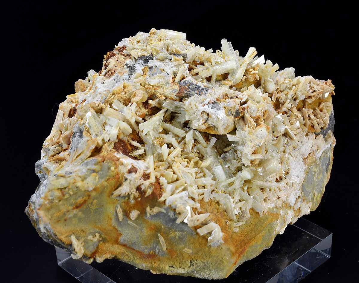Very nice specimen offering splendid light green Paravauxite crystals up to 1,0 associated with tan colored Sigloite xls richly set on matrix.