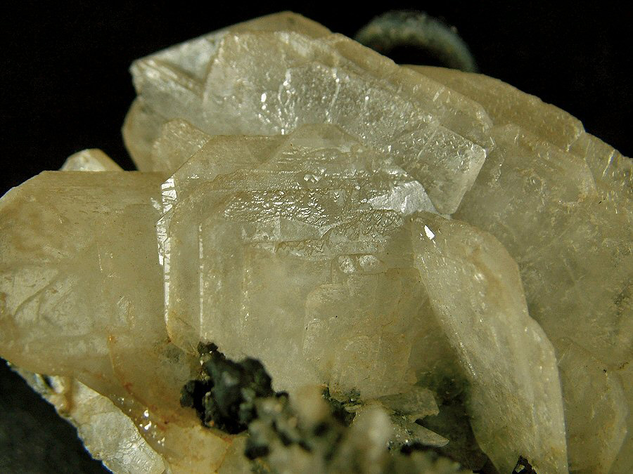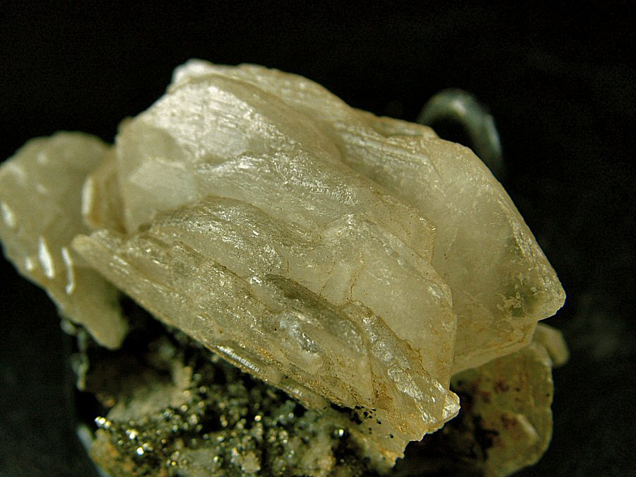 Big Baryte's crystals aggregate, intersected with each other, laid on a matrix rich in sulfides (Pyrite and Sphalerite). Photographed under strong light.
