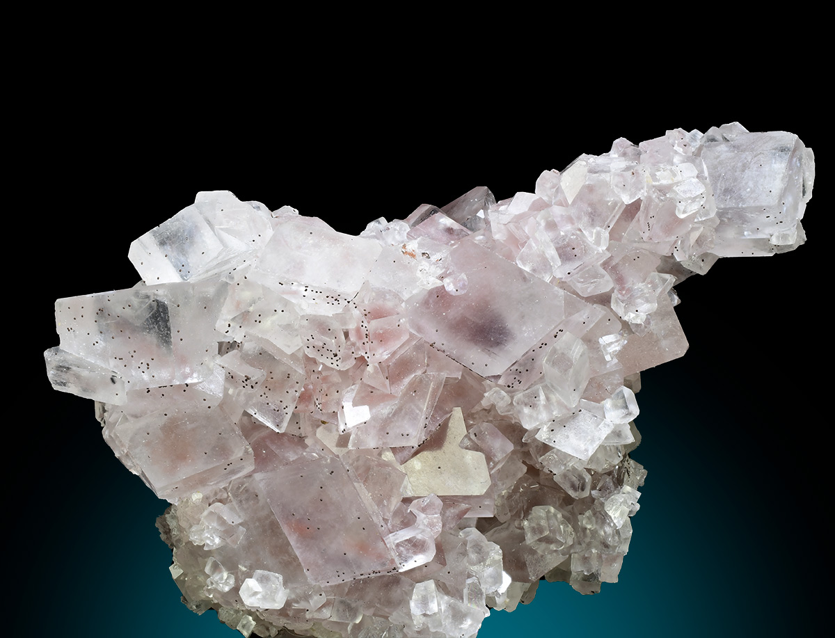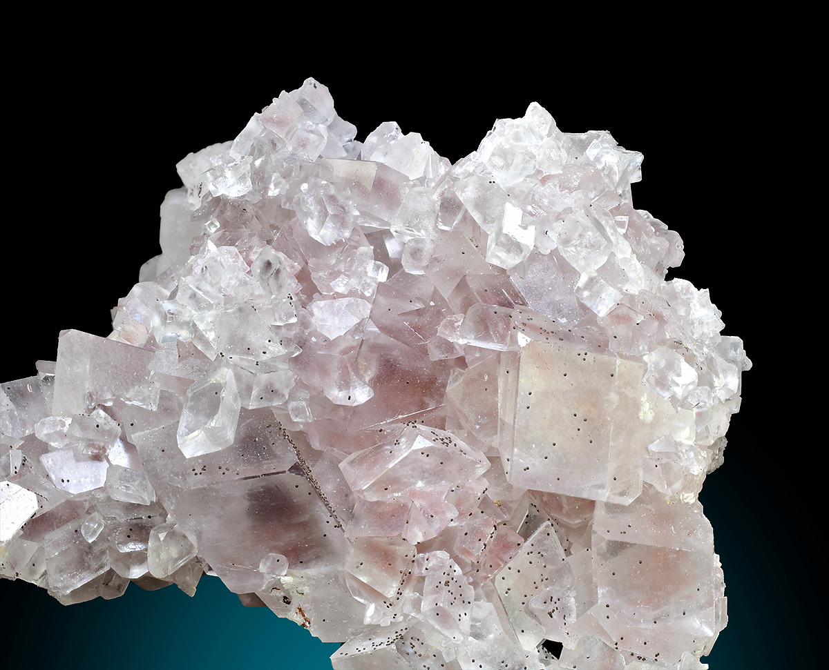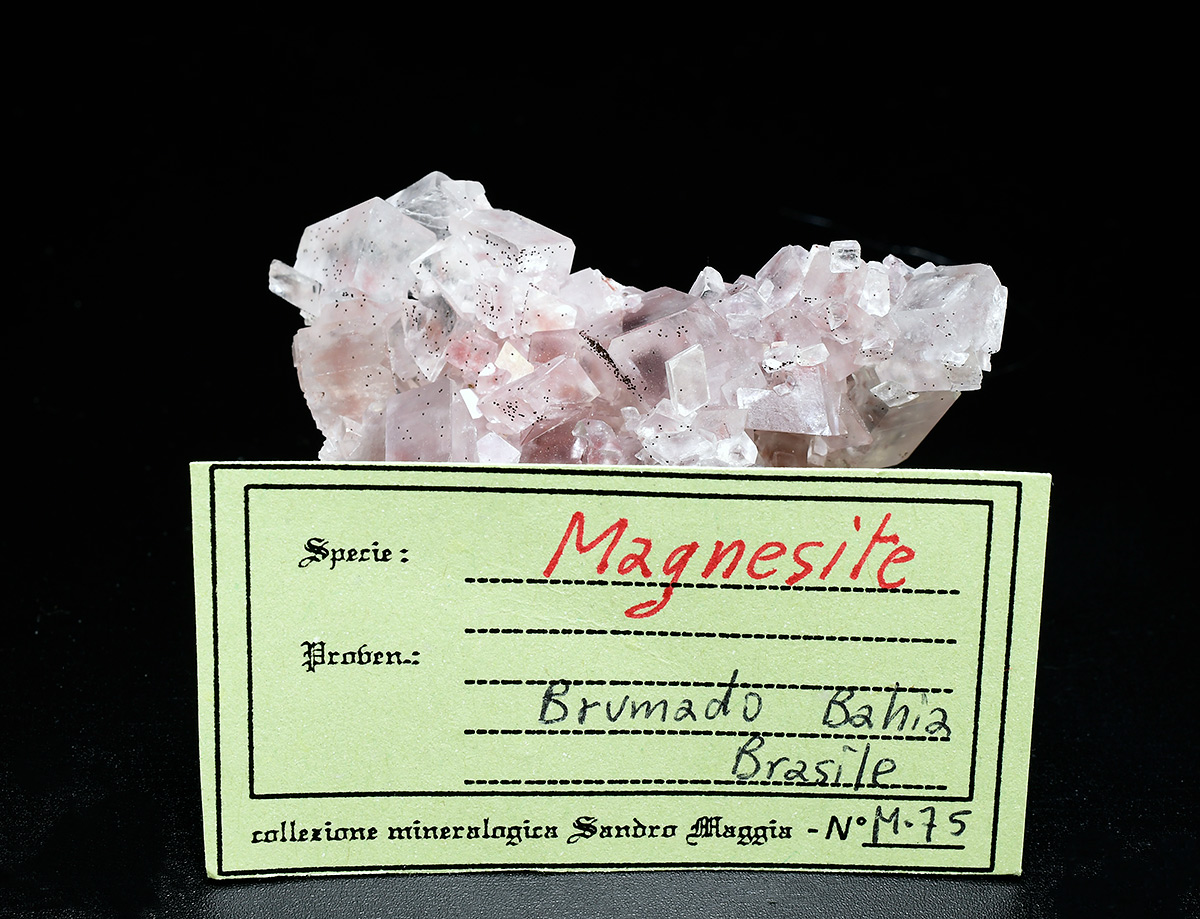 Cluster of gemmy Magnesite crystals to 1.2cm in size from the famous Brumado Mine in Brazil. This locality is well known for some of the world's finest Magnesite crystals and this is an excellent example. In addition to the wonderful Magnesite crystals, there dozens of micro sized sperical clusters of an unidentifield /(iron ?) mineral.