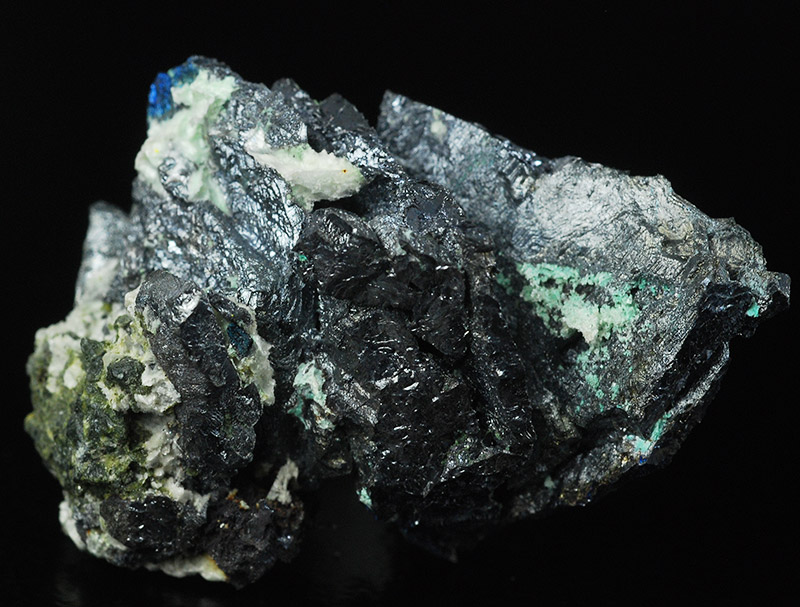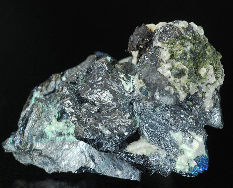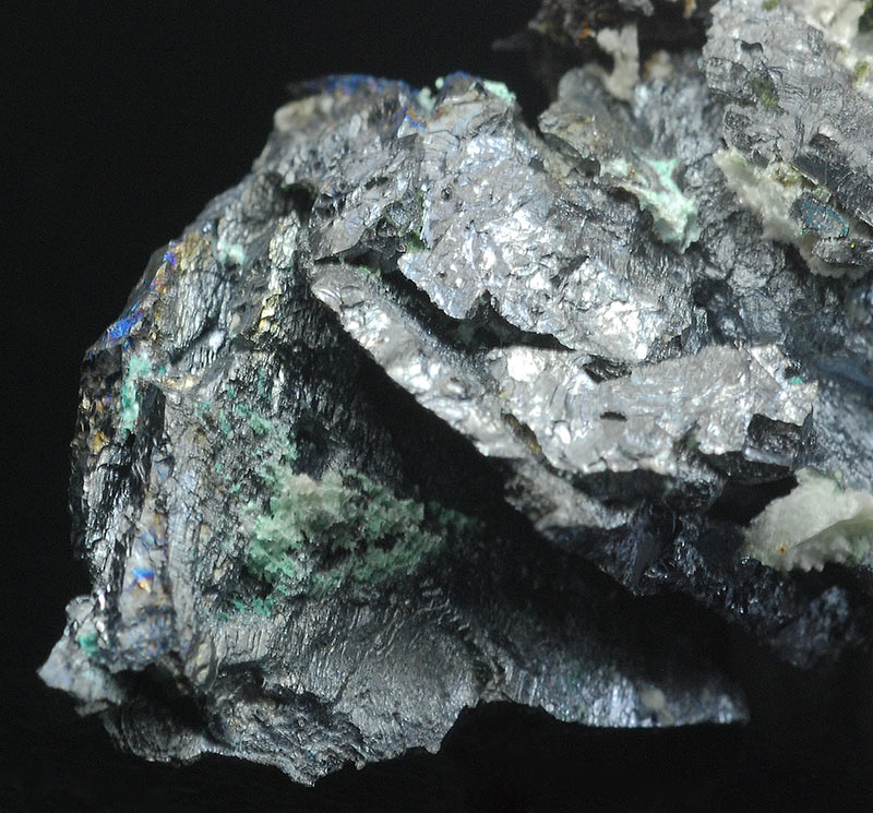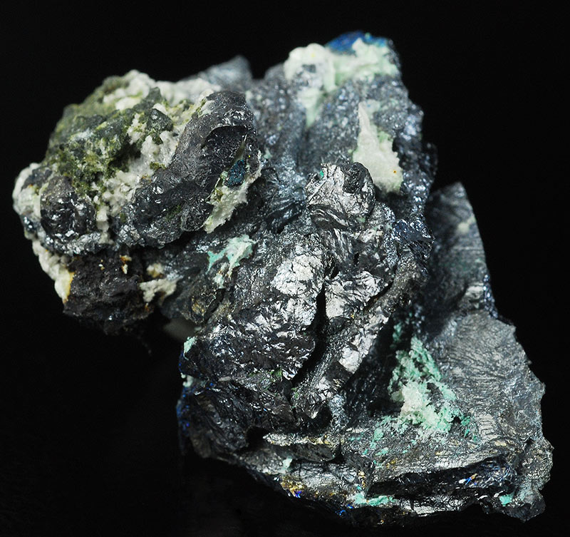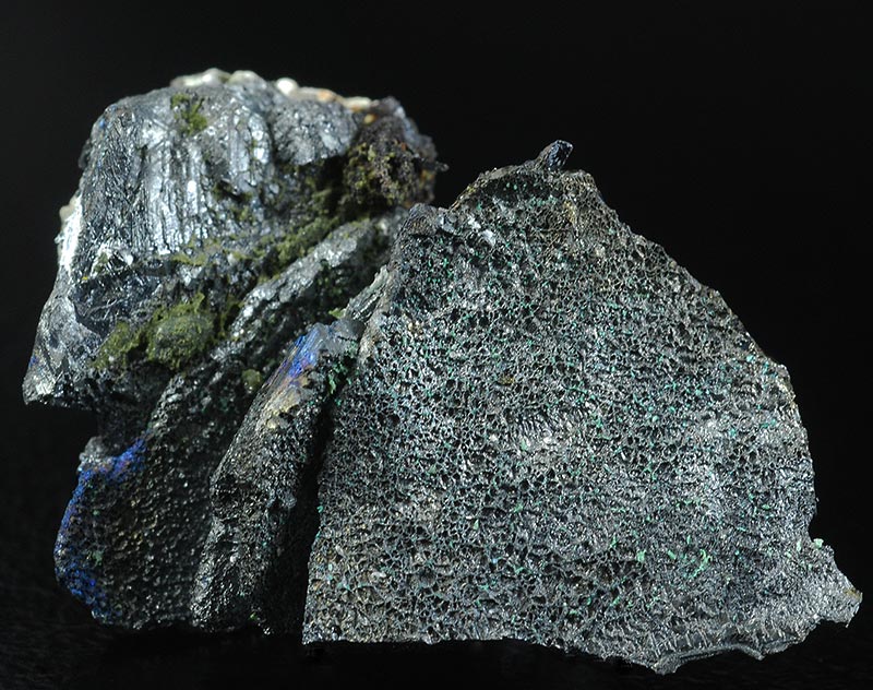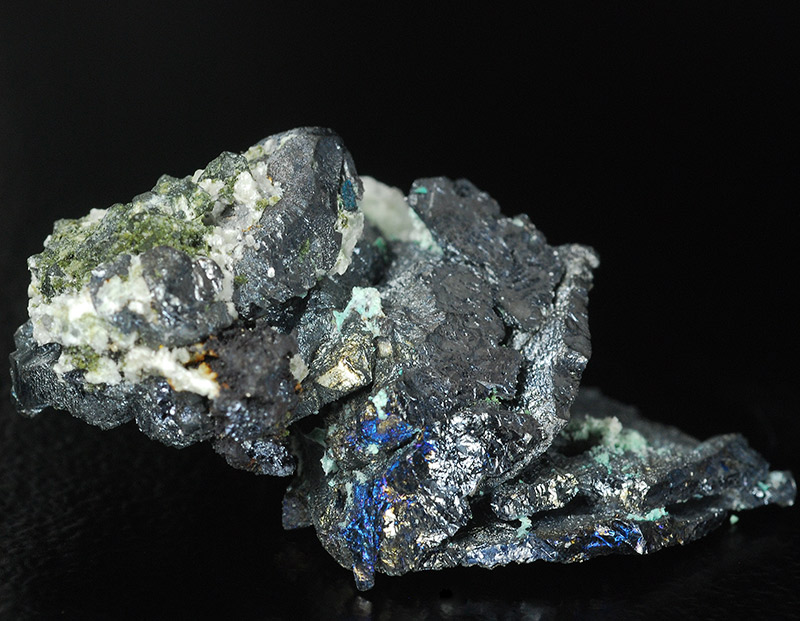 The blue iridescence is probably due to a coating of bornite.