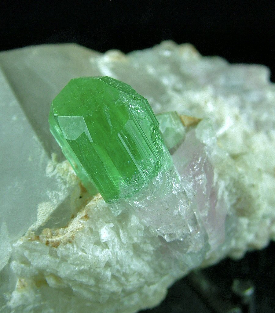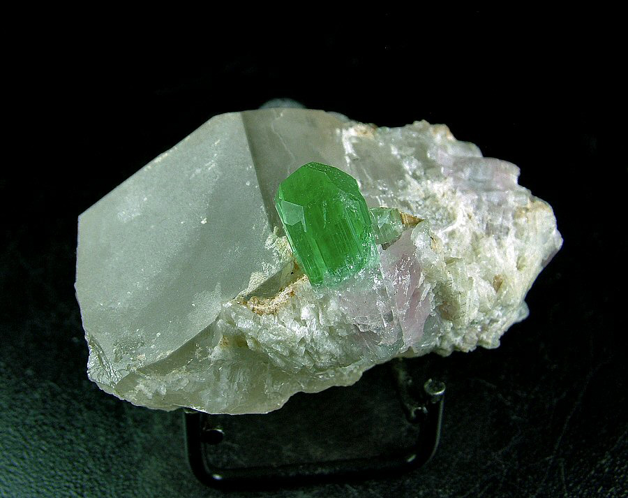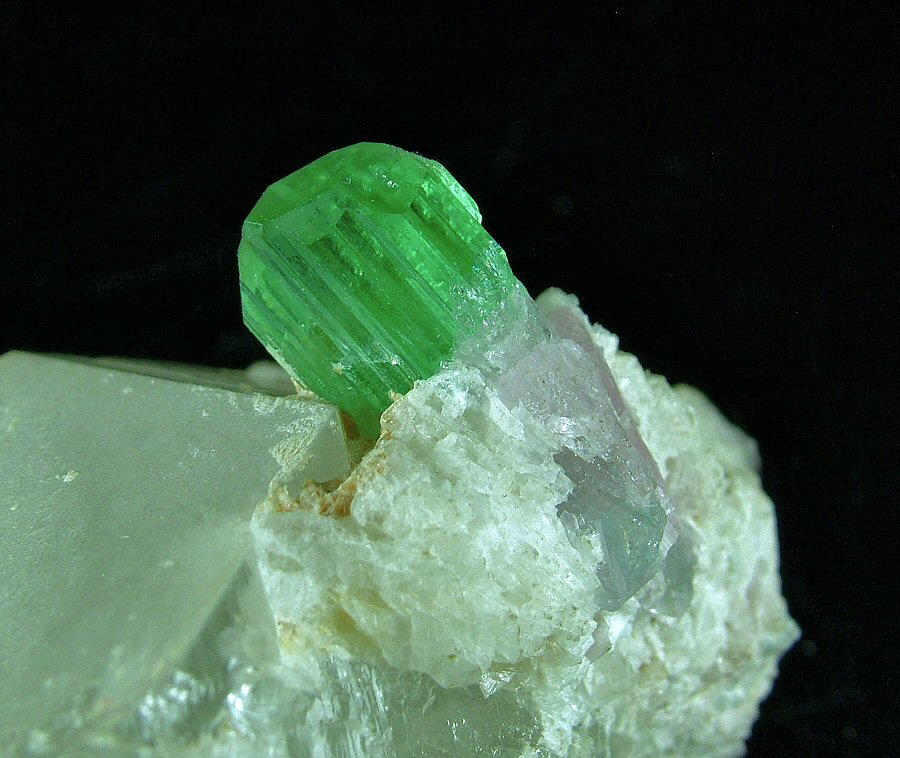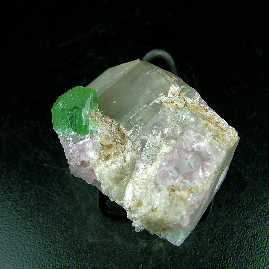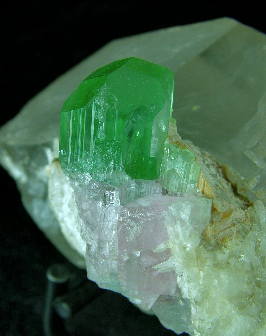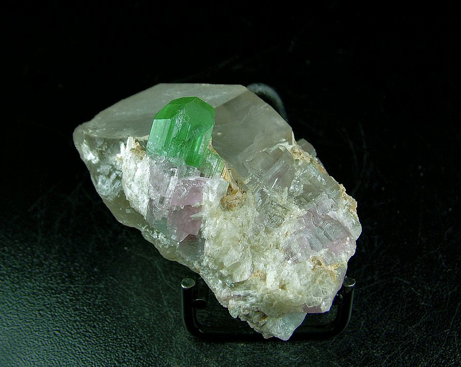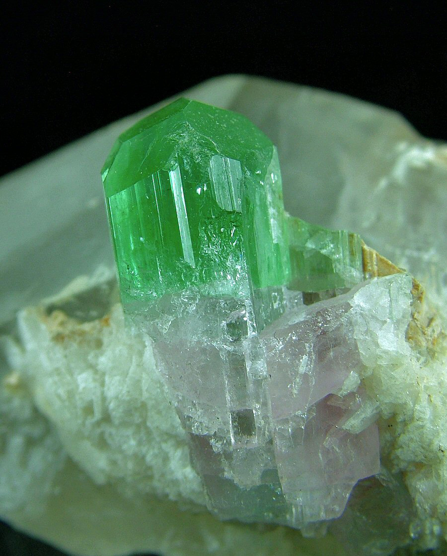 Wonderful Elbaite's crystal, with color from pink (at the base) to light green (on the top), well terminated, translucent and gemmy, implanted on a Quartz's crystal. With two cuts, on the base and on one side, that are not so visible.