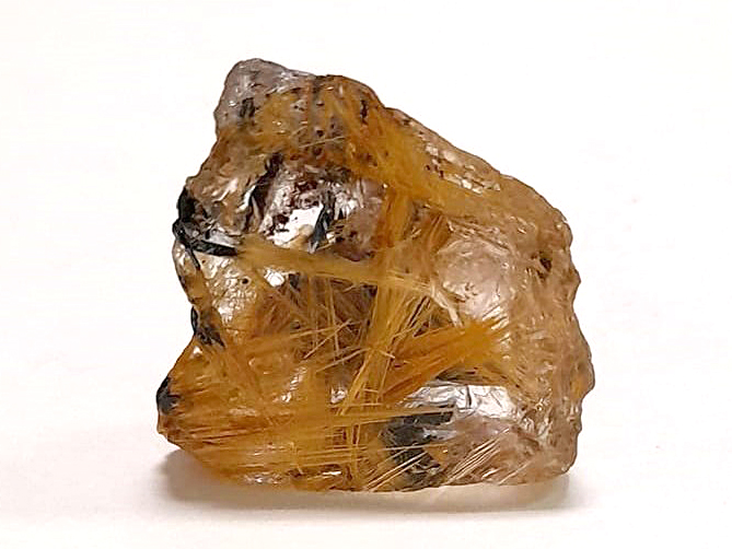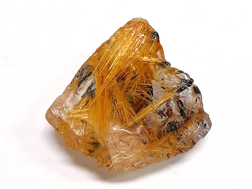Small fragment of Quartz (with a crystal face), but beautiful, it is a jewel rich in lamellar crystals of Hematite and golden needles of Rutile perfectly visible through the colorless Quartz. A nice sample, very representative...I'm a bit sorry to give it away...