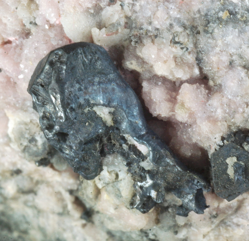 Nice acanthite xx on light pink rhodochroite and calcite xx on matrix with some pearceite xx.