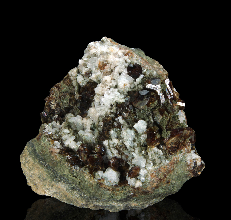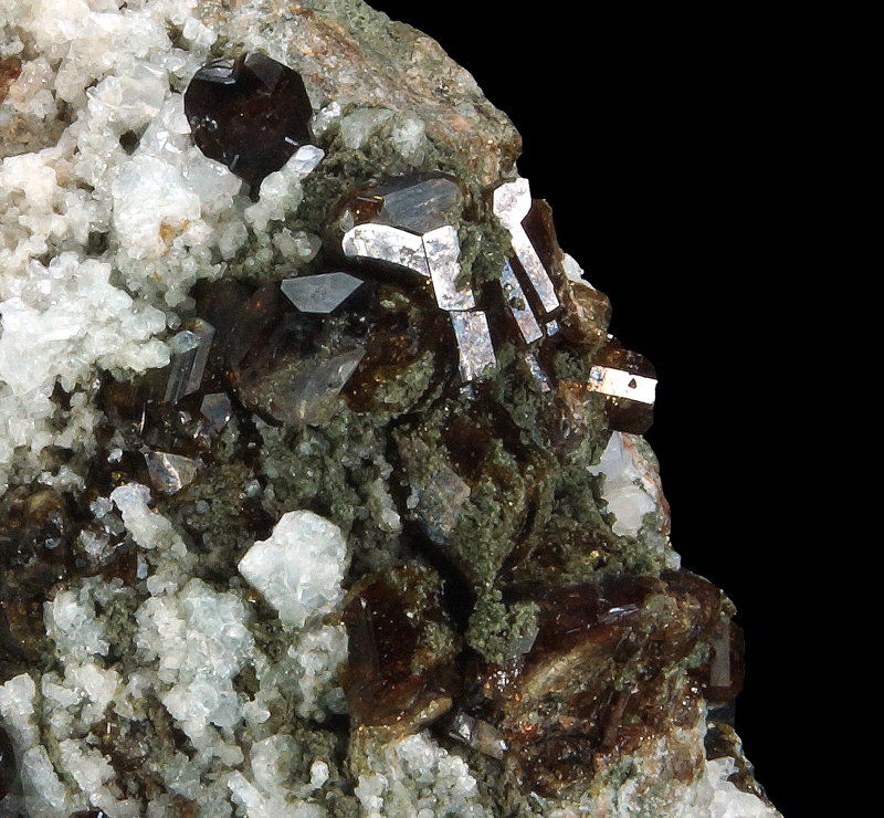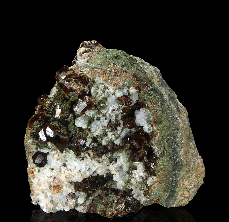 Superb vesuvianite xx on matrix with sodalite in association. Classic specimen for the type locality.