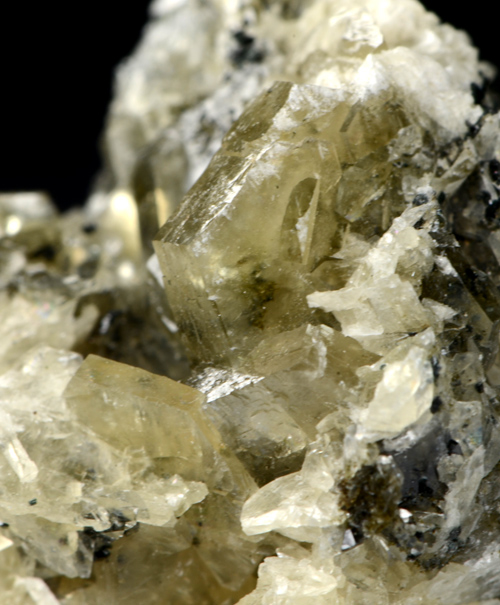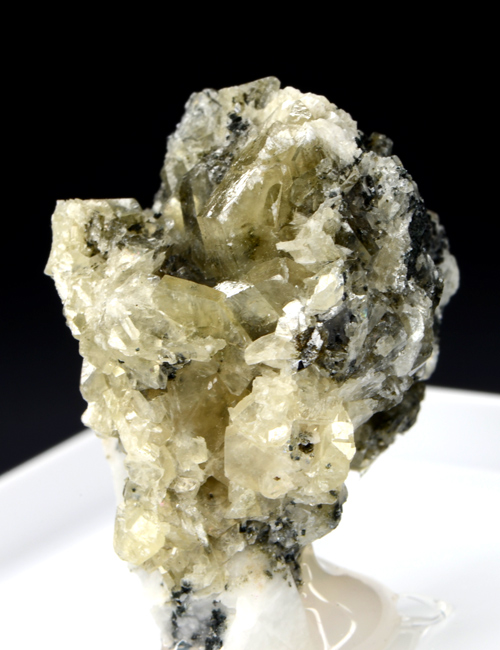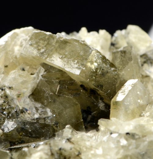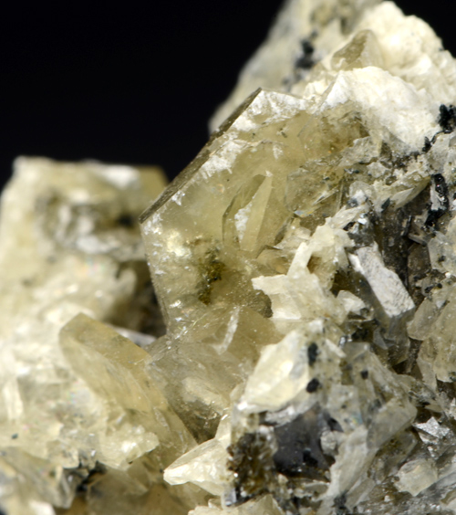 Fine cluster featuring several white, translucent xls of Catapleite. The xls show a clean tabular heaxagonal shape.
