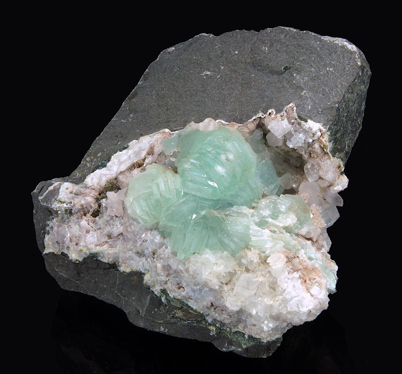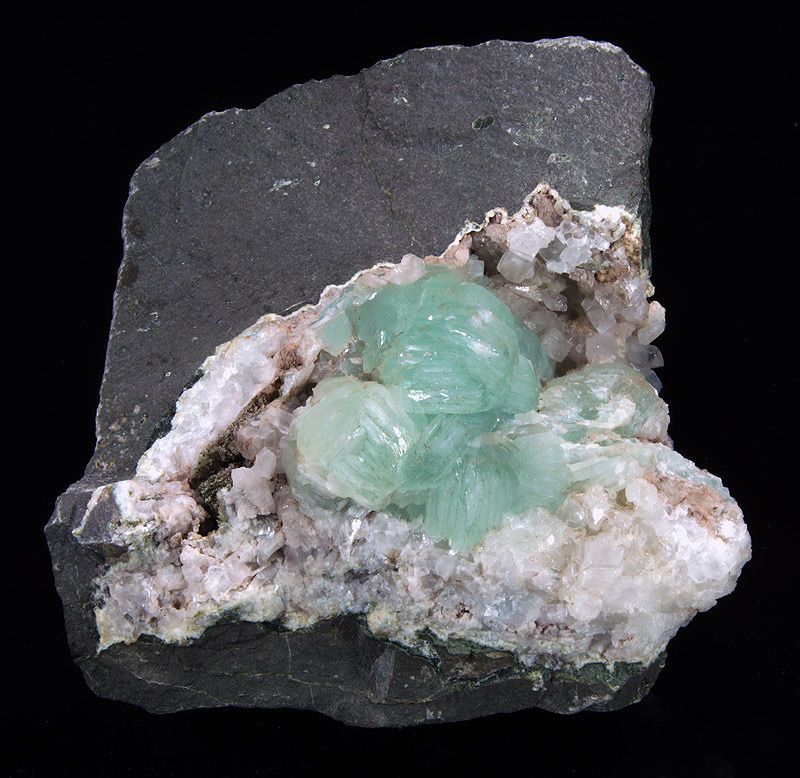 Very nice prehinte crystals cluster with aphophyllite.