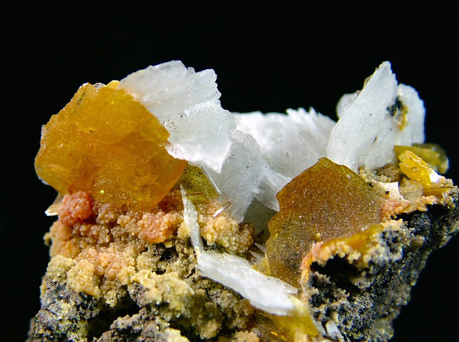 Wulfenite with Baryte and Mimetite - San Francisco Mine (Cerro Prieto Mine), Cerro Prieto, Cucurpe, Mun. de Cucurpe, Sonora, Mexico