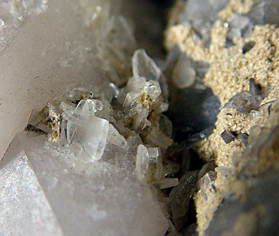 On a group of milky Quartz's ctystals up to 66 mm, hundreds of white Bertrandite's crystals up to 5 mm are laid down, with two nice octahedral green Fluorite's crystals (22 mm), Ferberite (10 mm) and a myriad of extremely shiny Pyrite's microcrystals. Really nice and in very well conditions, from a locality that no more gives samples.