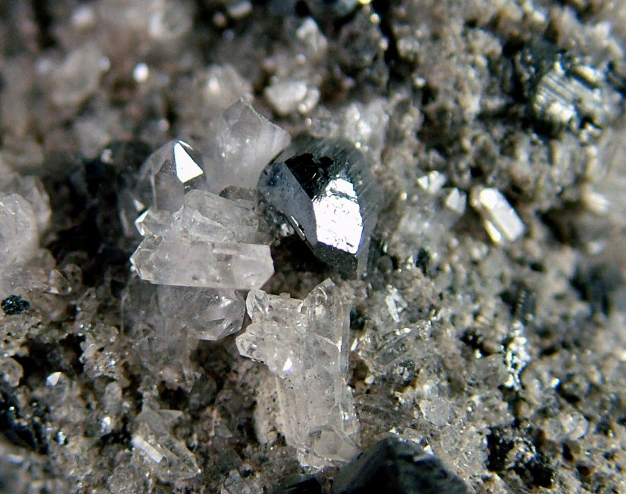 Exceptionally shiny and well formed crystals, that cover all the matrix. There is a carpet of little colorless and brilliant Quartz's crystals. A very fine specimen of this species from Kazakhstan.