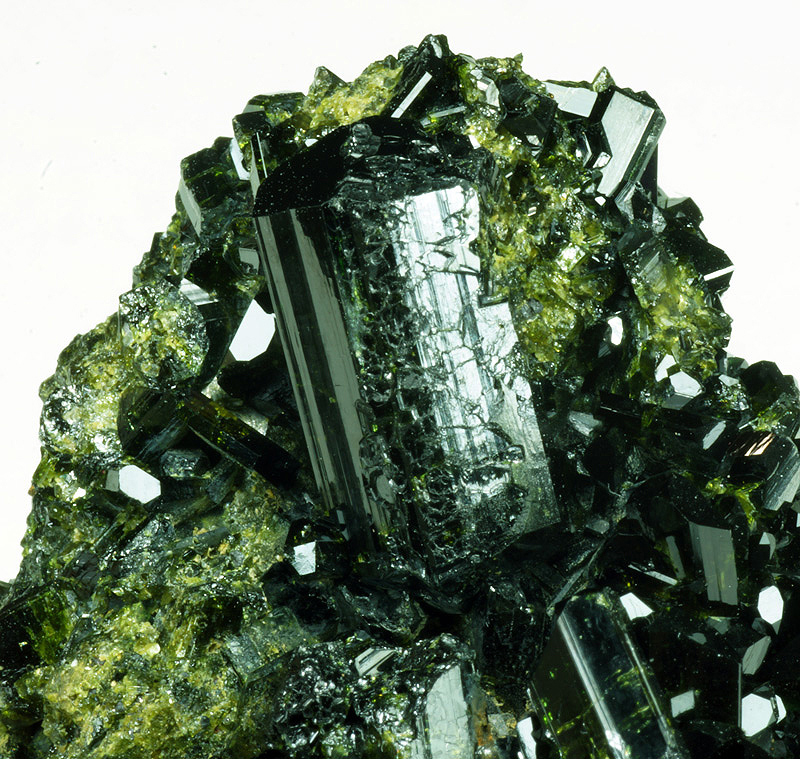 Sharp and lustrous Epidote xls on matrix.