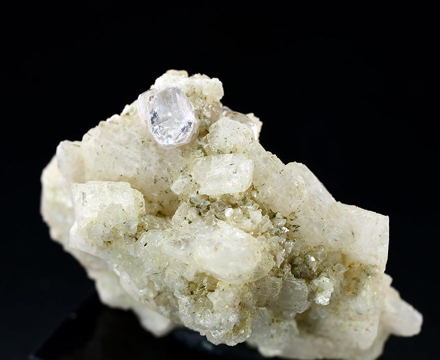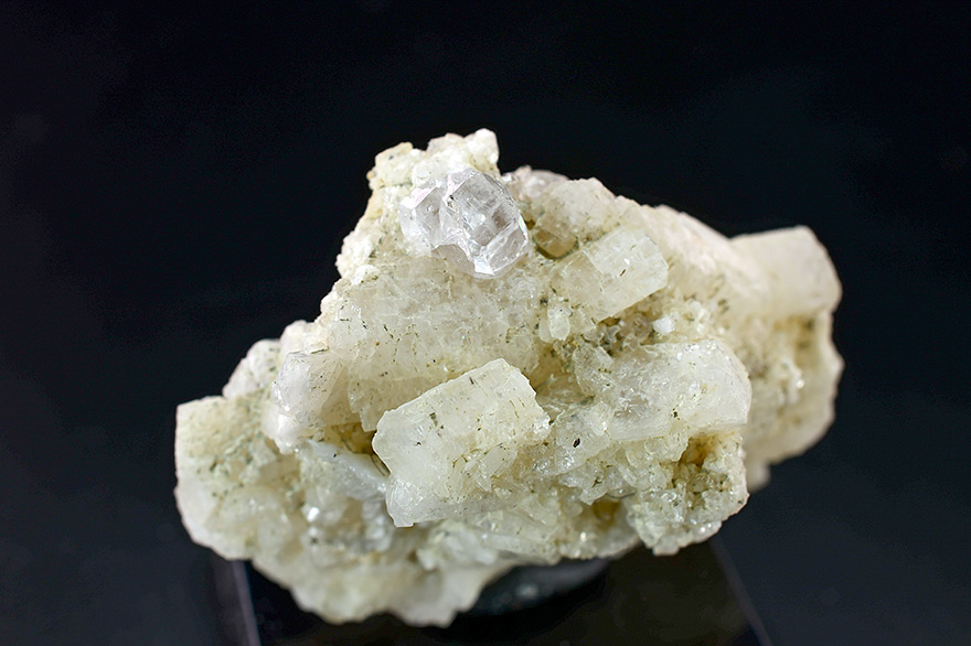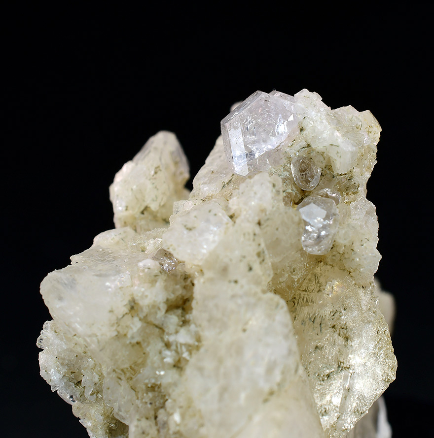 Clear alpine Apatite xls with typical habit uo to 5 mm in size on adularia matrix.
