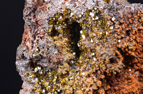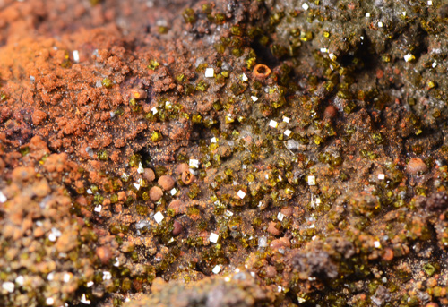 Olive green pseudocubic xls of Farmacosiderite scattered on matrix. Quite uncommon specie for Sardinia, well represented, though in micro xls. Former P. Bamberga collection.