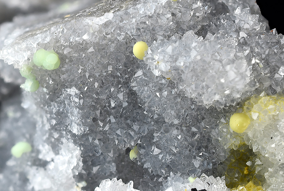 Spheroidal aggregates of minyulite, from pale yellow to light green color set nicely on matrix.