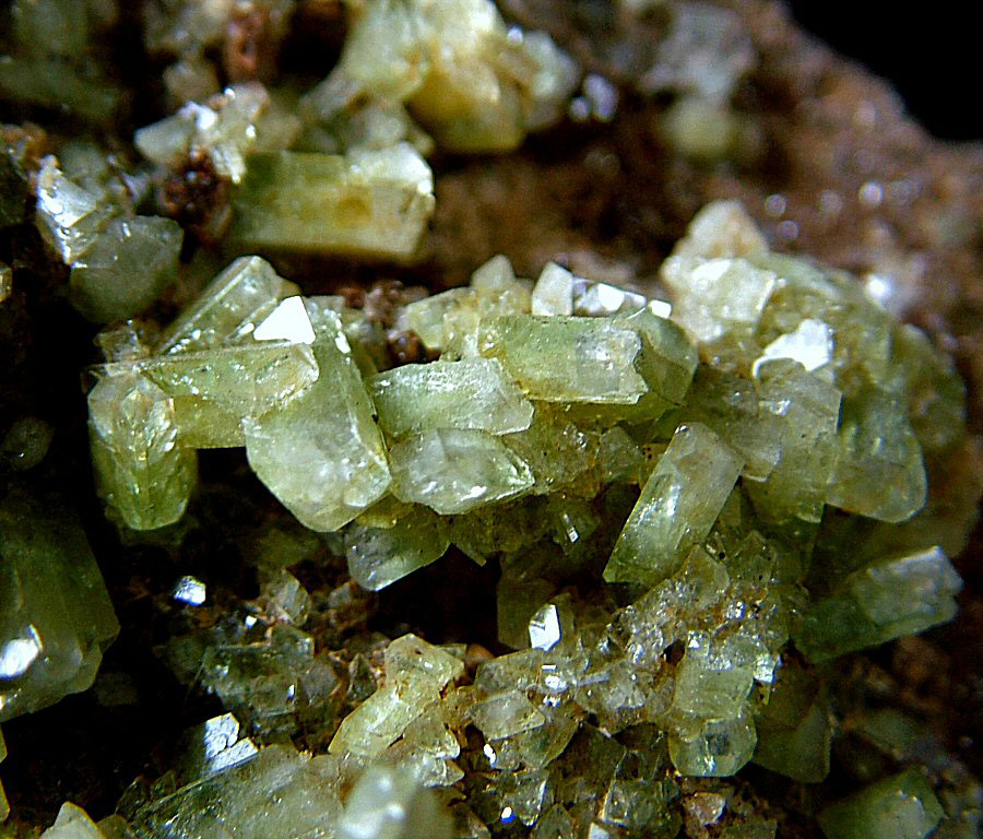 Augelite's crystals up to 5 mm, with a light green color, well evident on the Siderite's matrix in little brown crystals. Interesting sample.