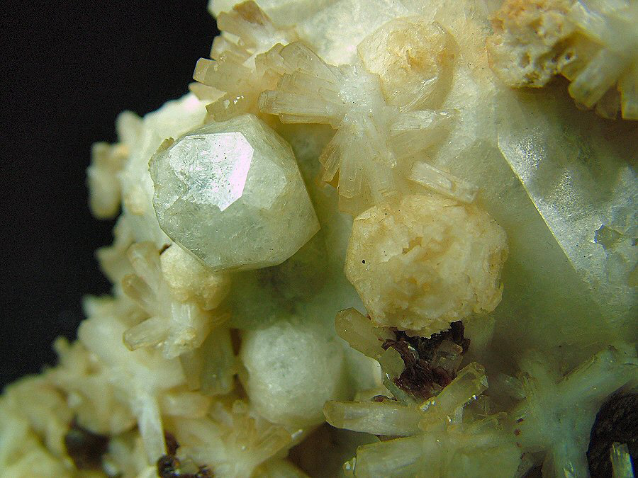 Analcime with Natrolite, Rhodochrosite and Aegirine - Poudrette quarry, Mont Saint-Hilaire, La Vallée-du-Richelieu RCM, Montérégie, Québec, Canada