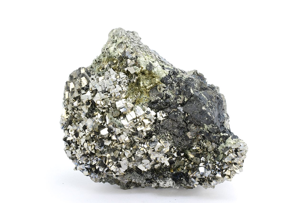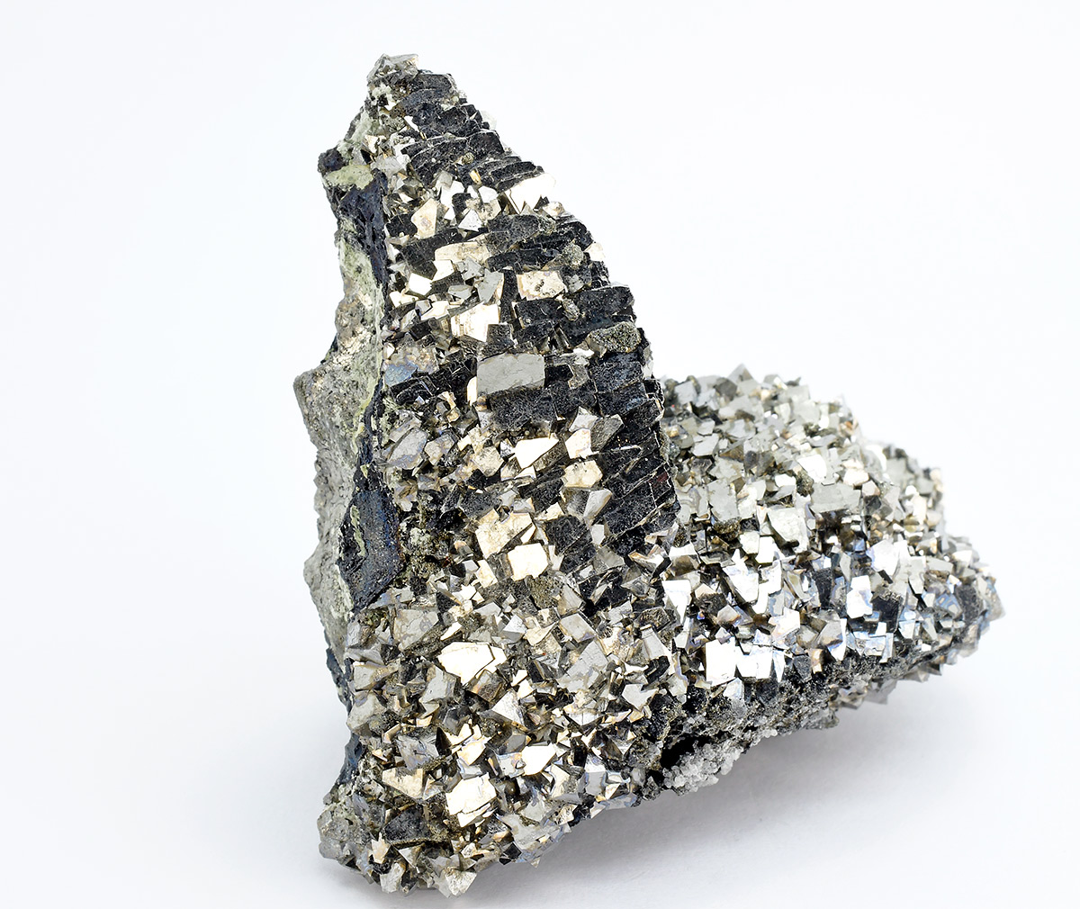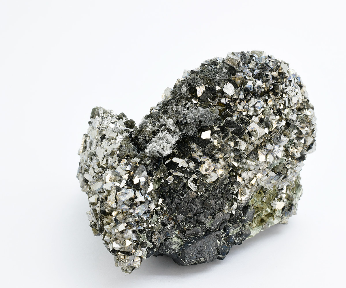A very attractive specimen with hundreds bright, sharp silvery xls of Arsenopyrite up to 7-8 mm on Lollingite matrix.