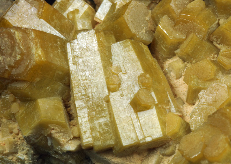 Old yellow vanadinte var. endlichite xx on matrix.