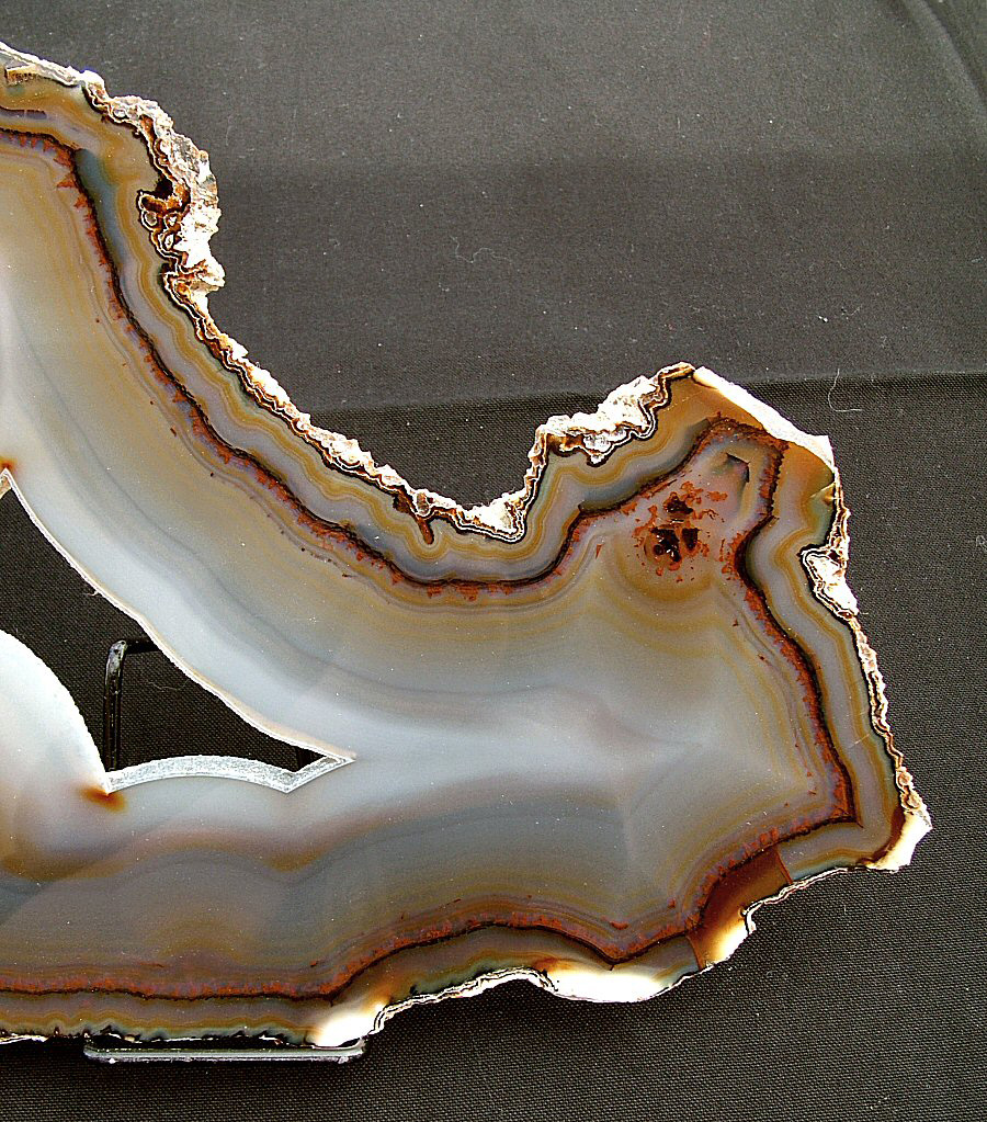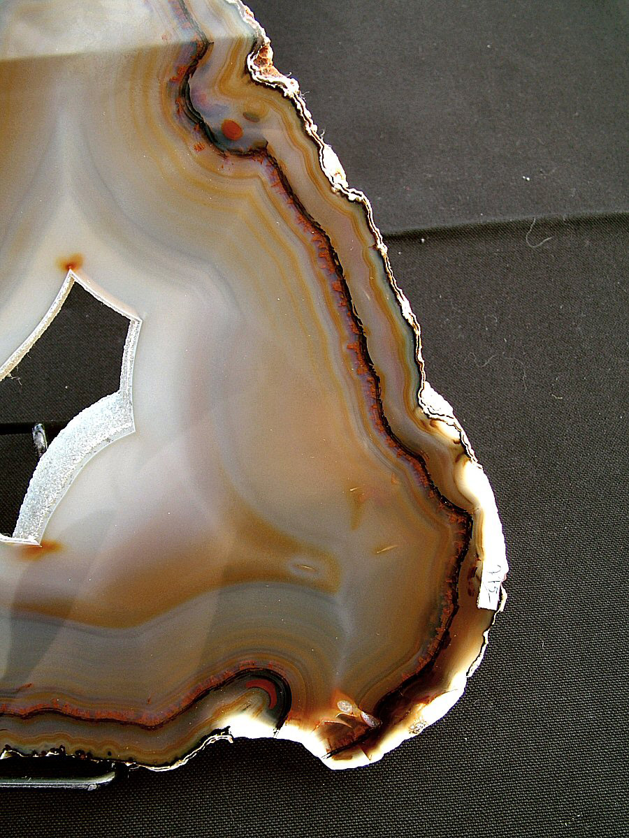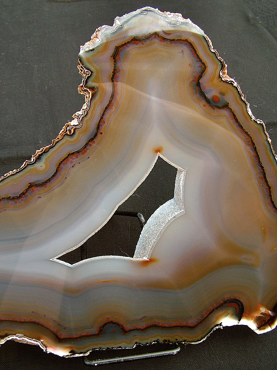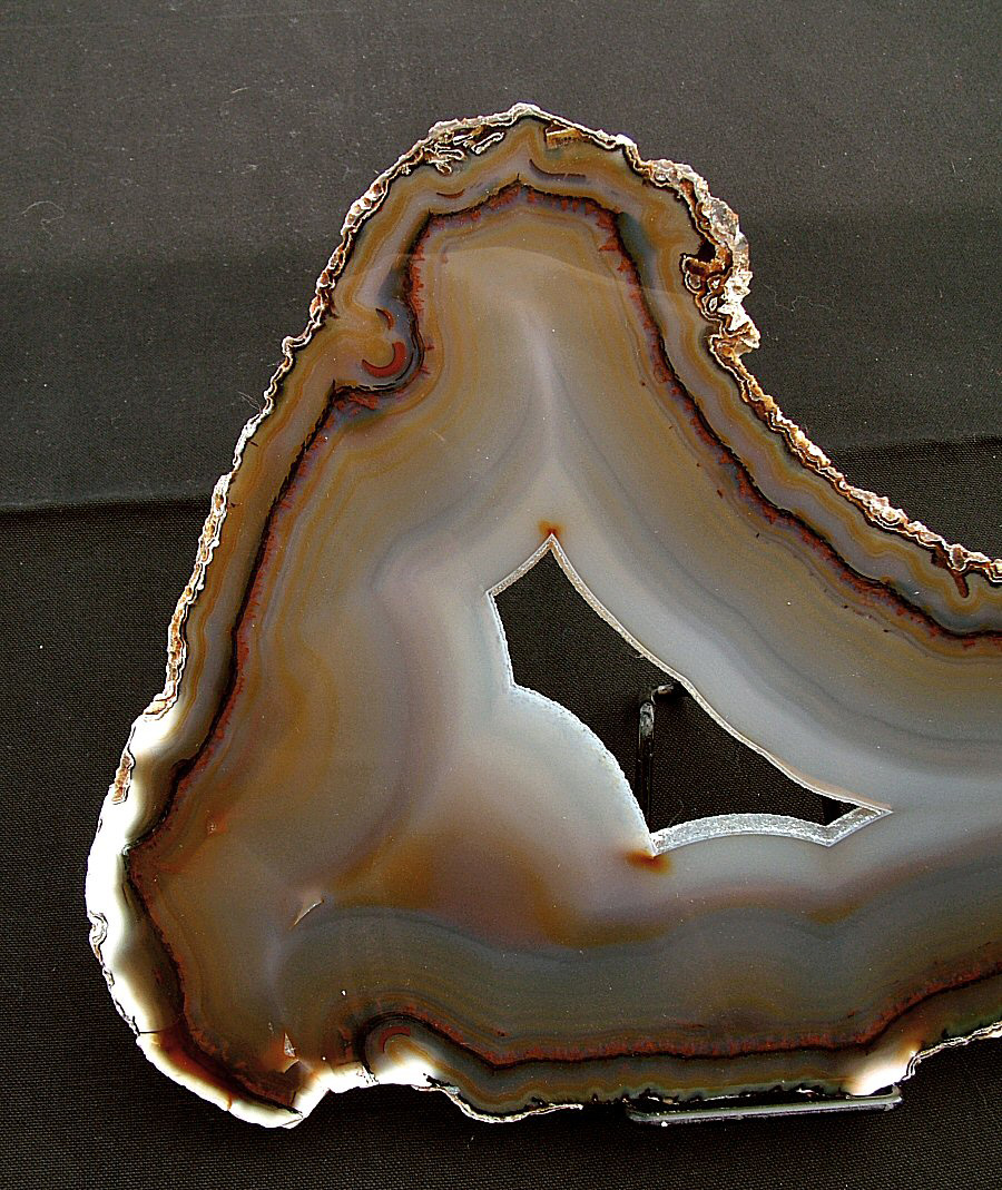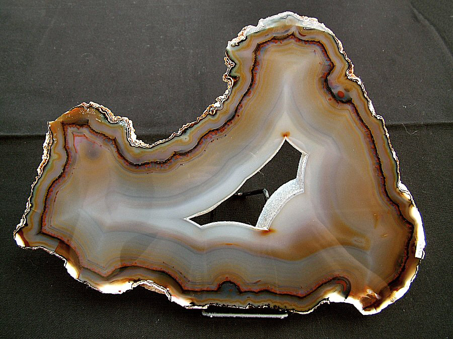 Gorgeous translucent Quartz var. Agate's slice, with different zoning, natural colors, glossy and brilliant on both faces.