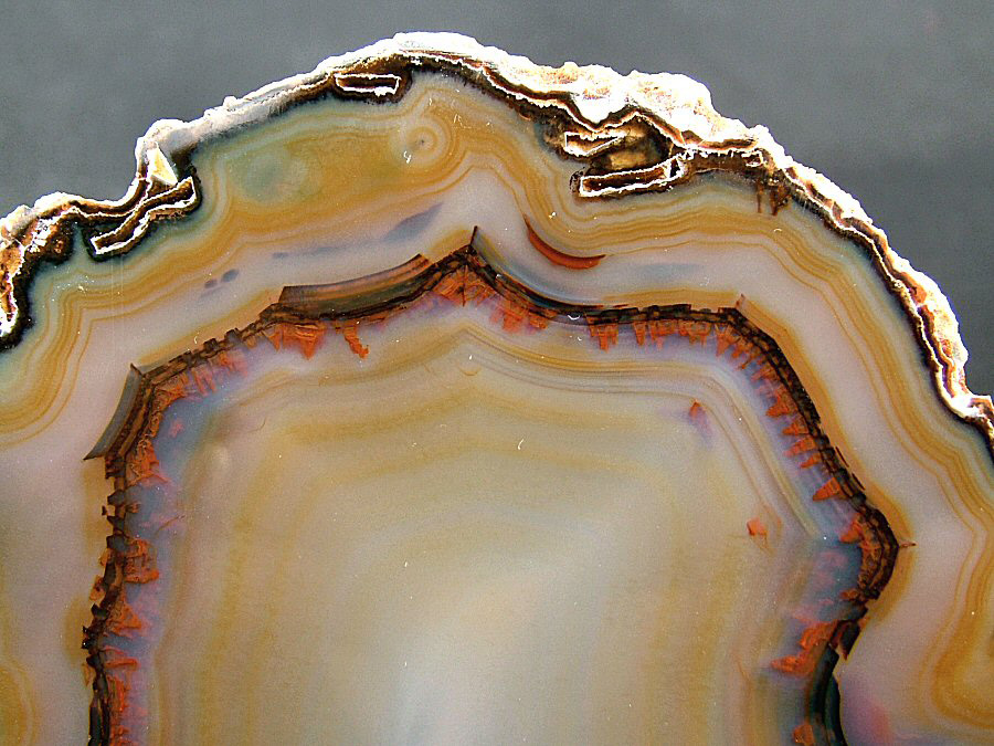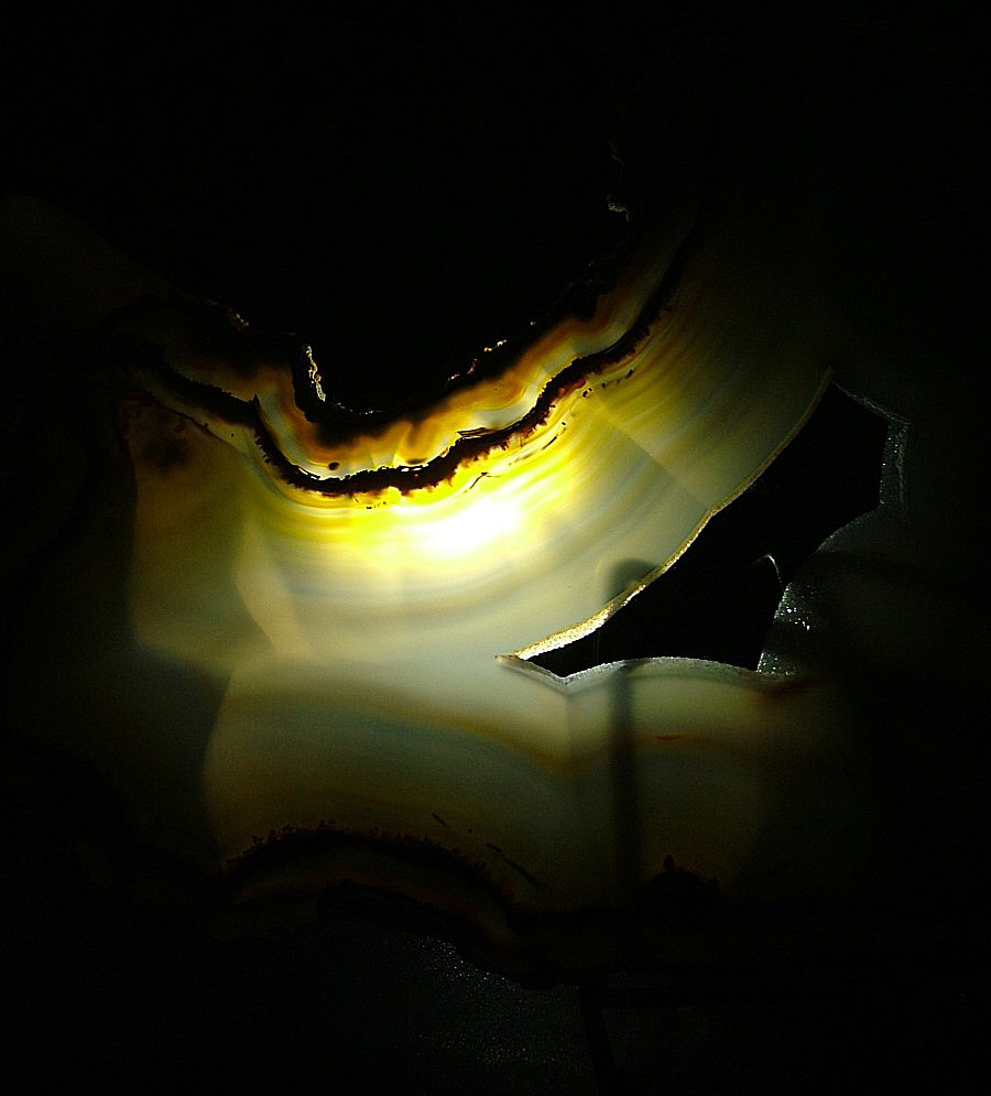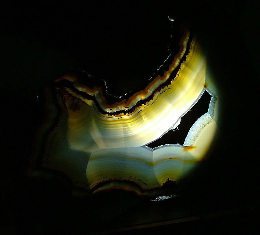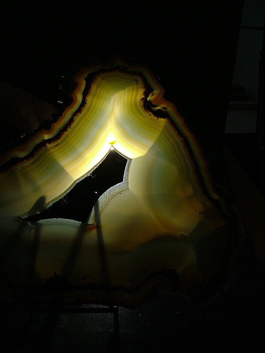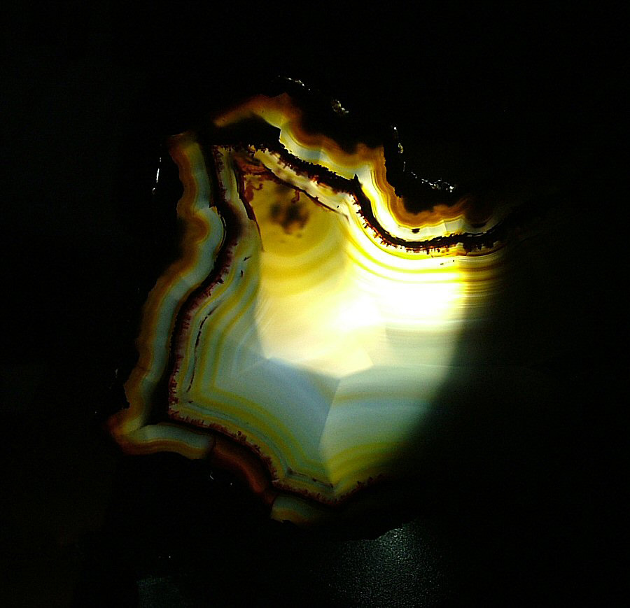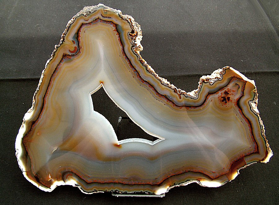 Gorgeous translucent Quartz var. Agate's slice, with different zoning, natural colors, glossy and brilliant on both faces.