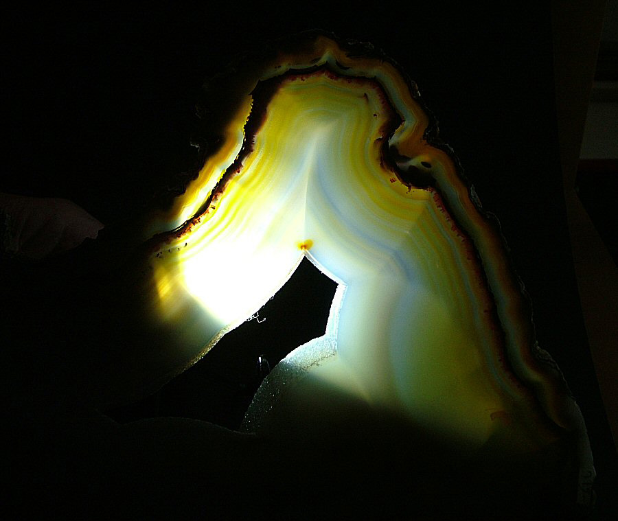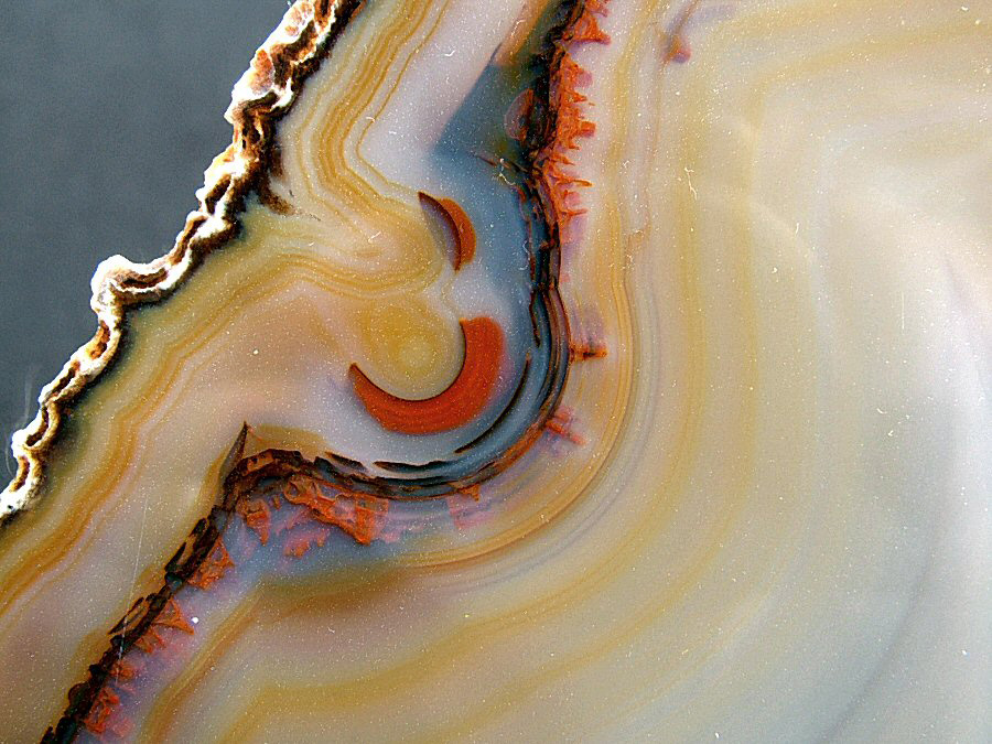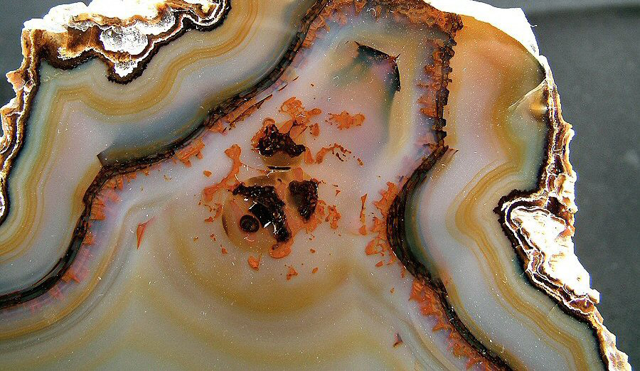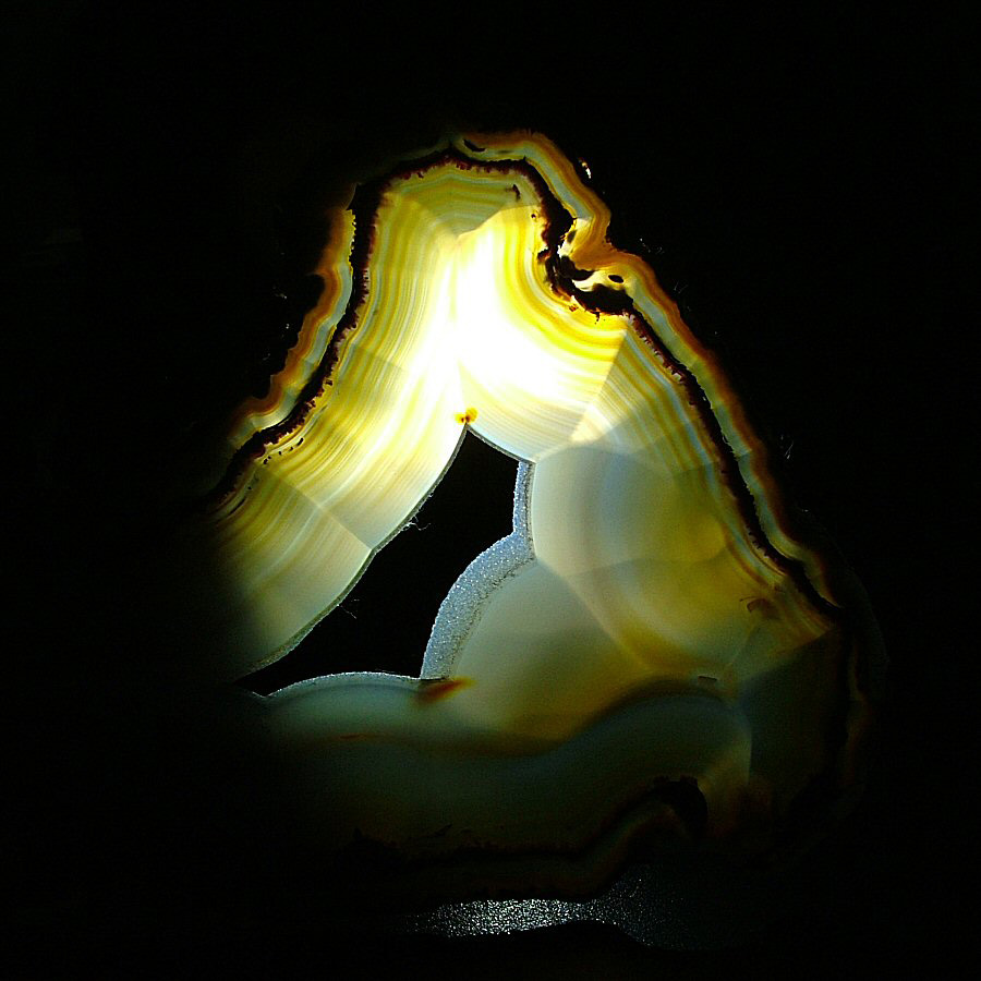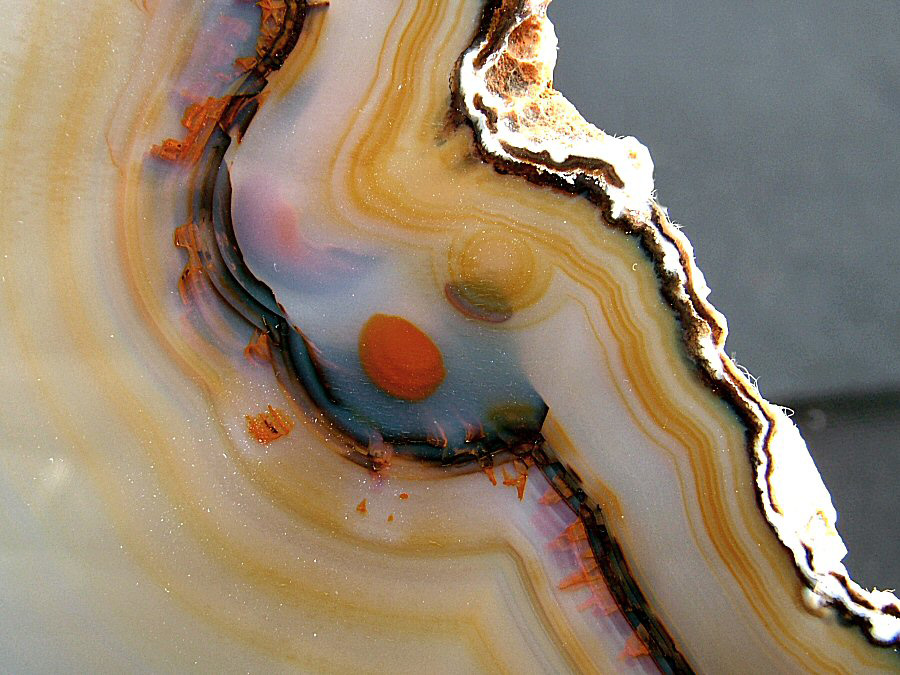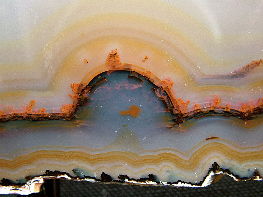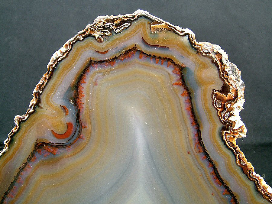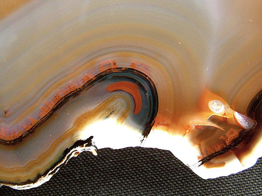 Gorgeous translucent Quartz var. Agate's slice, with different zoning, natural colors, glossy and brilliant on both faces.