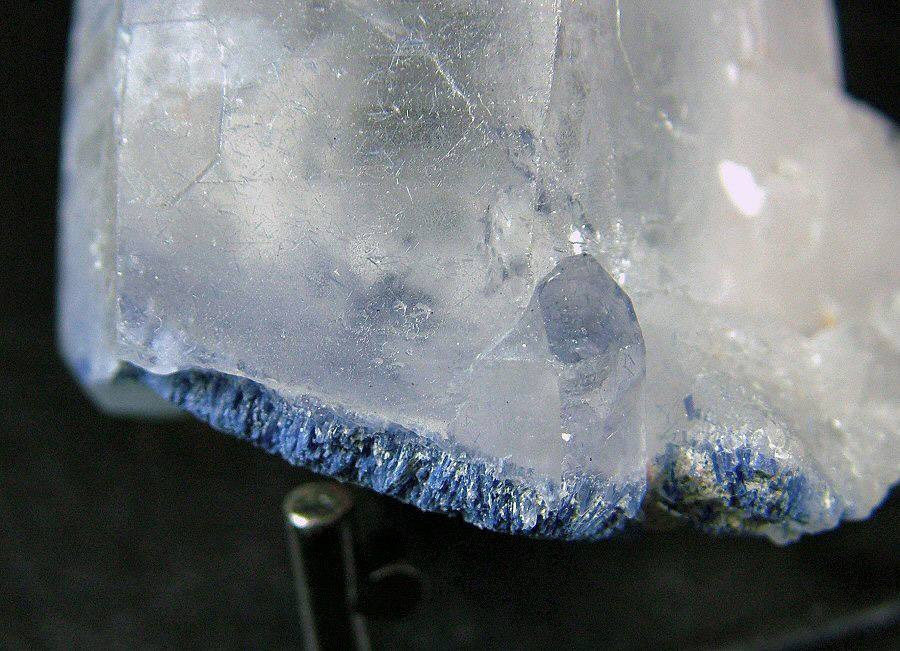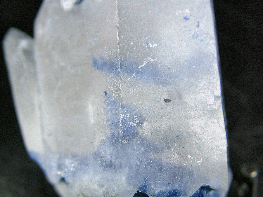 A myriad of Dumortierite's crystals with a nice intense blue color are included in the Quartz and cover it partially. Sample coming from an inactive locality, therefore rare on the market by now. Photographed under strong light.