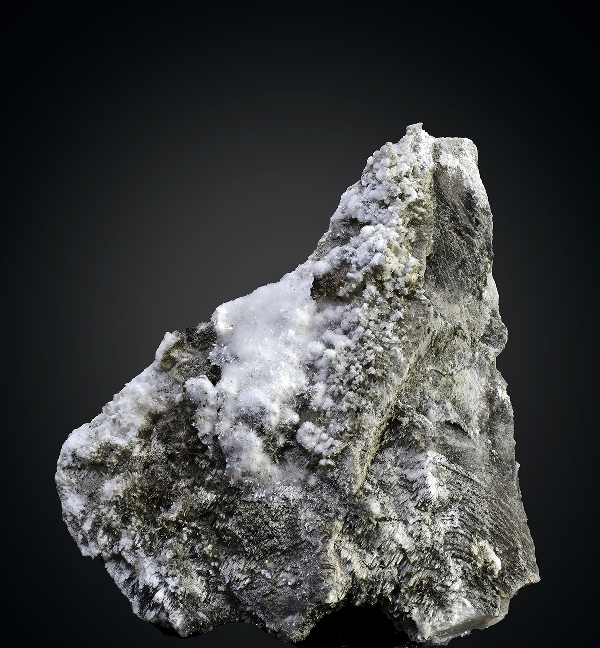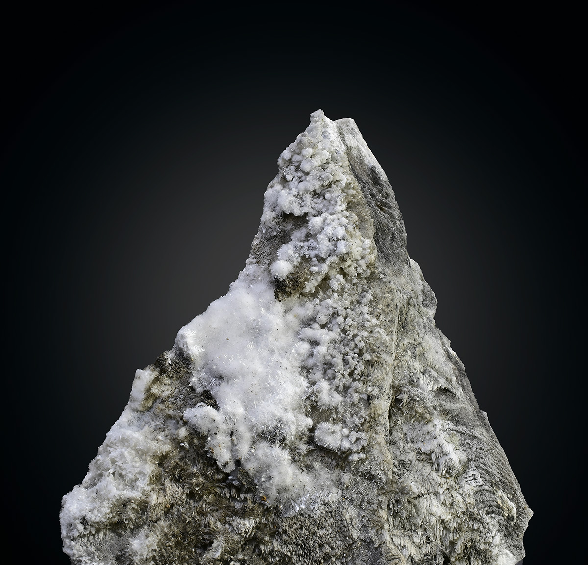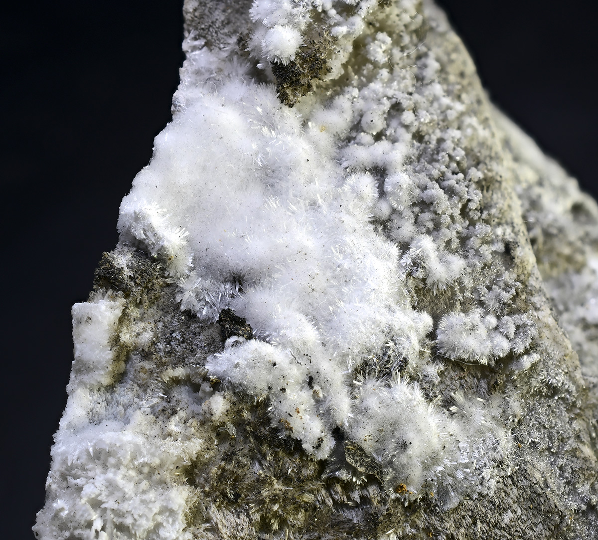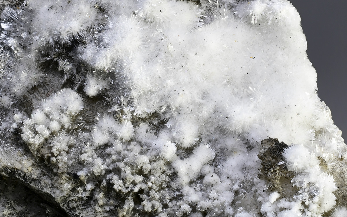 Very rare Vladimirite in white acicular xls up to 2 mm in sprays richly scattered on calcite matrix.