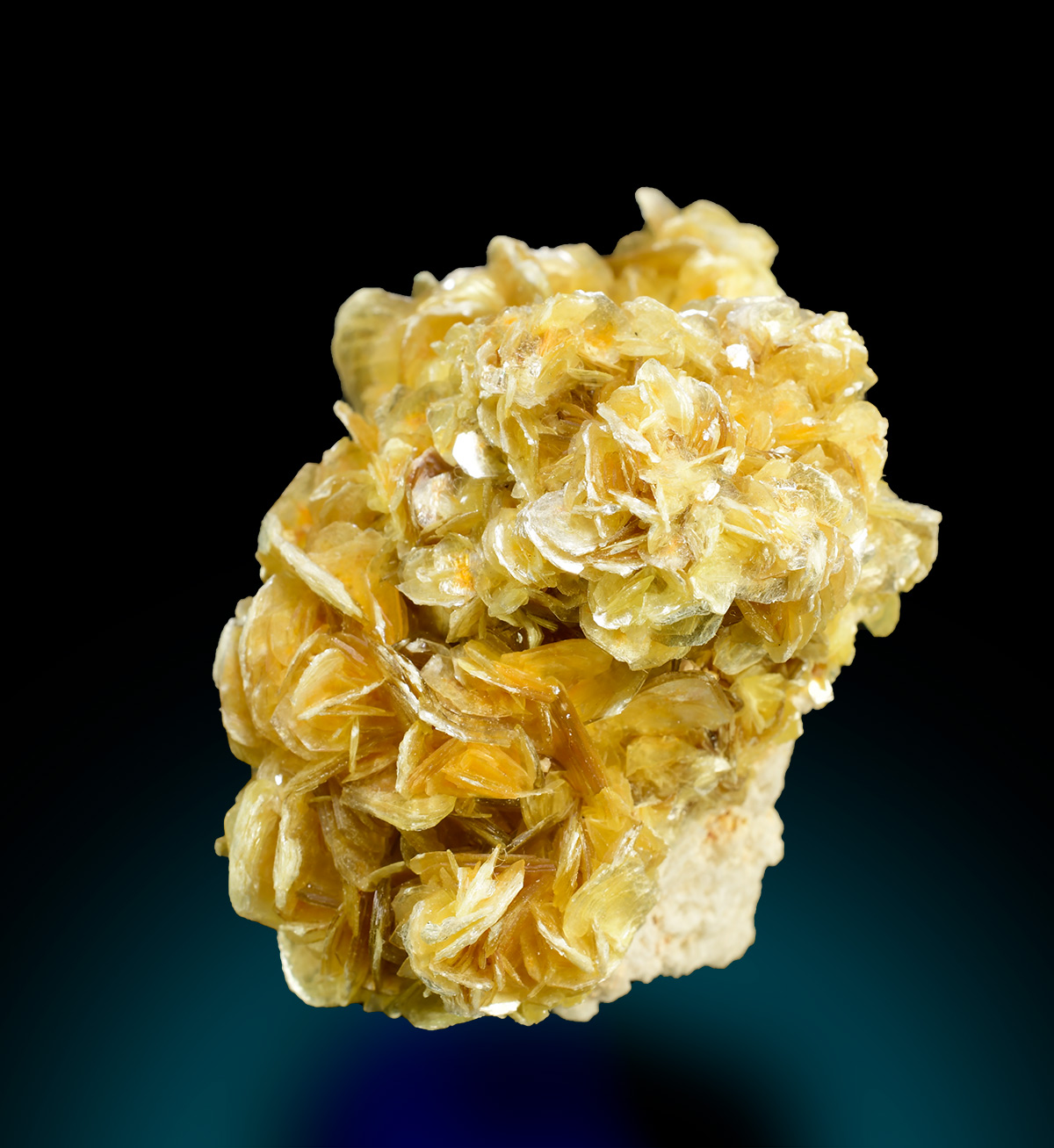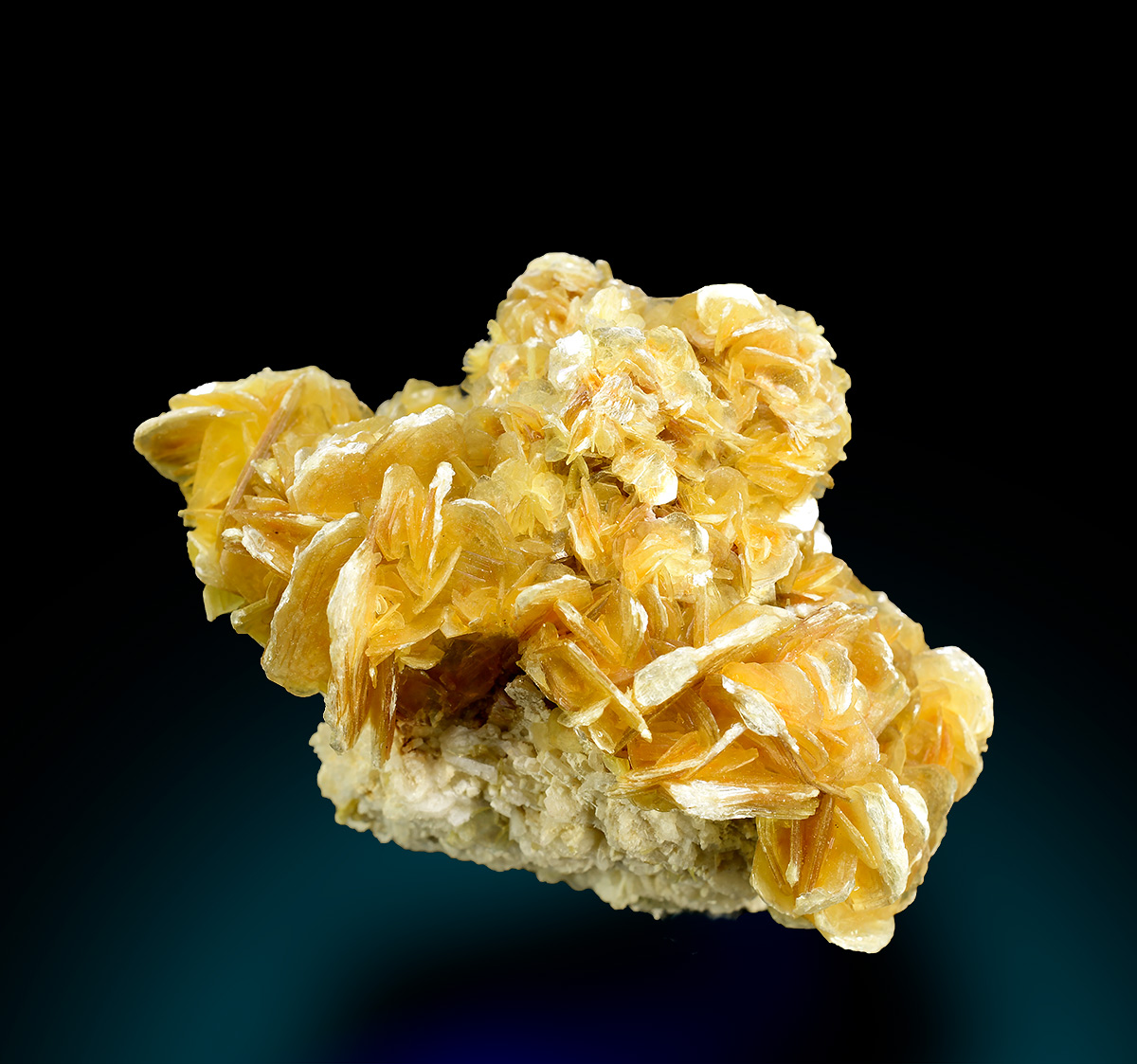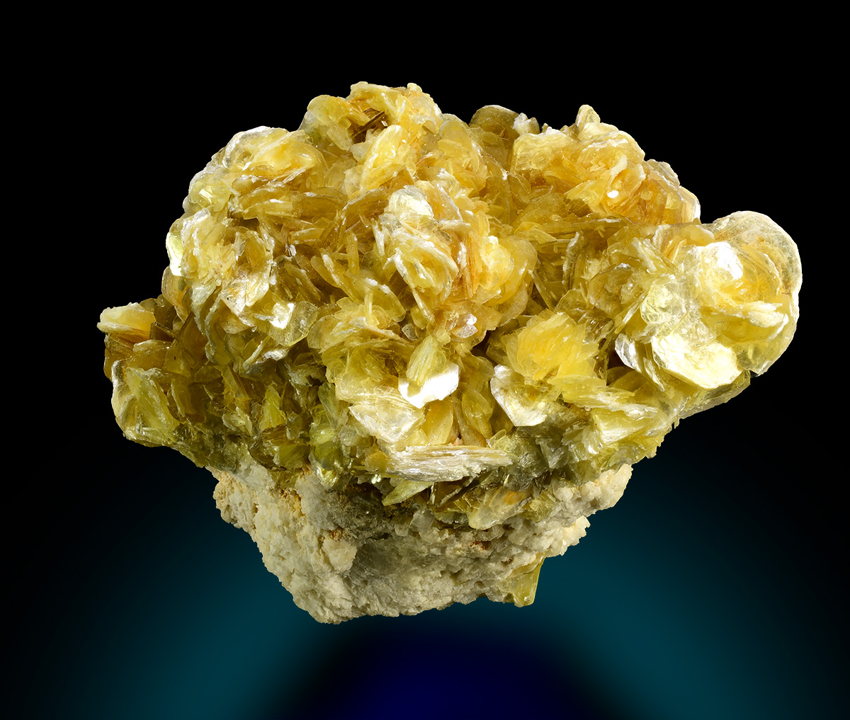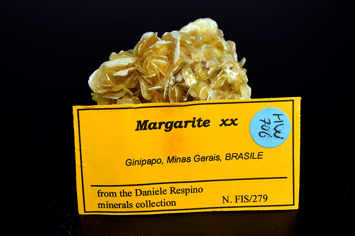 A group of rare yellow Margarite/lepidolite blades up to 1,5 cm on matrix.Ex Daniele Respino collection.
