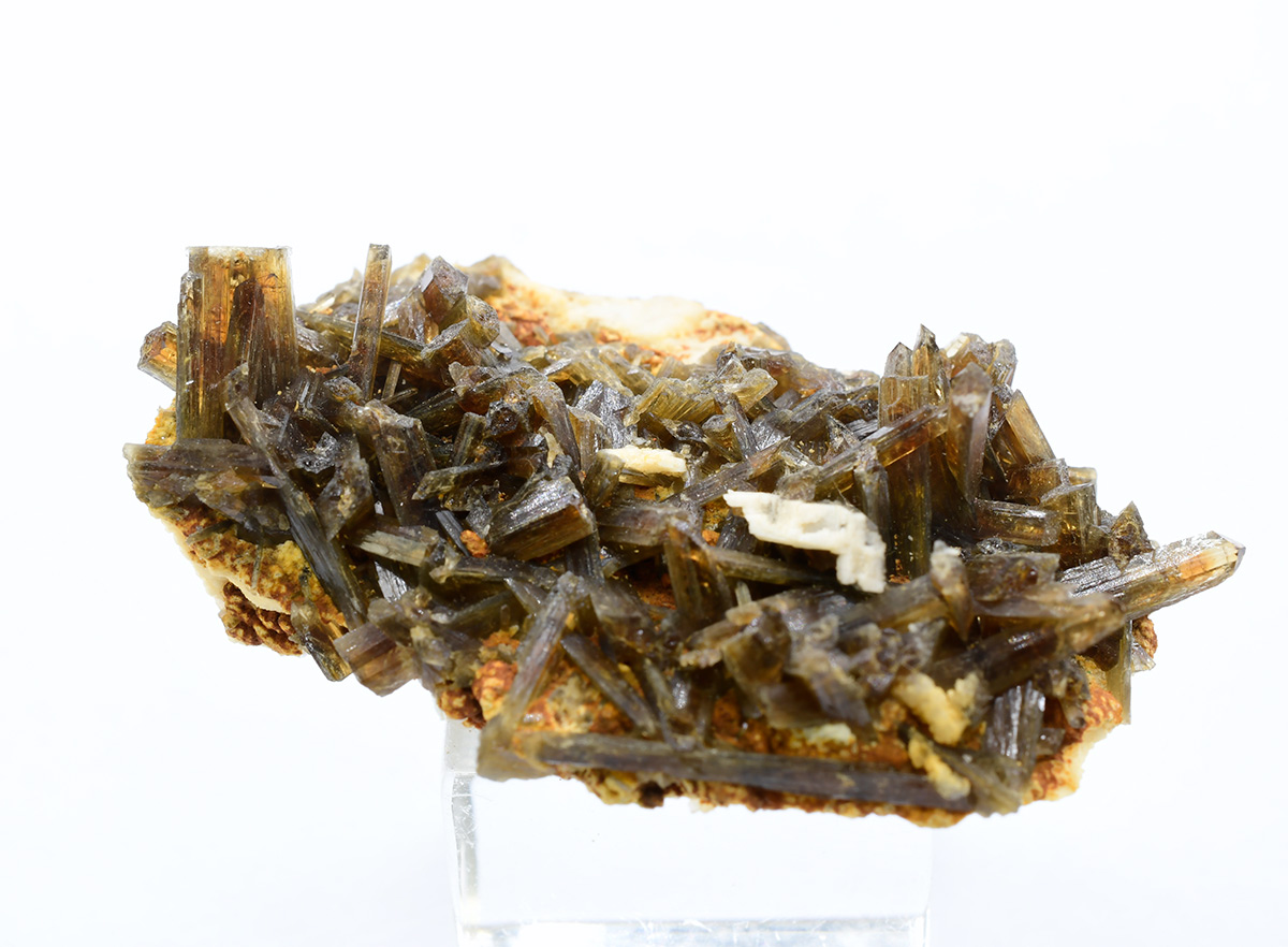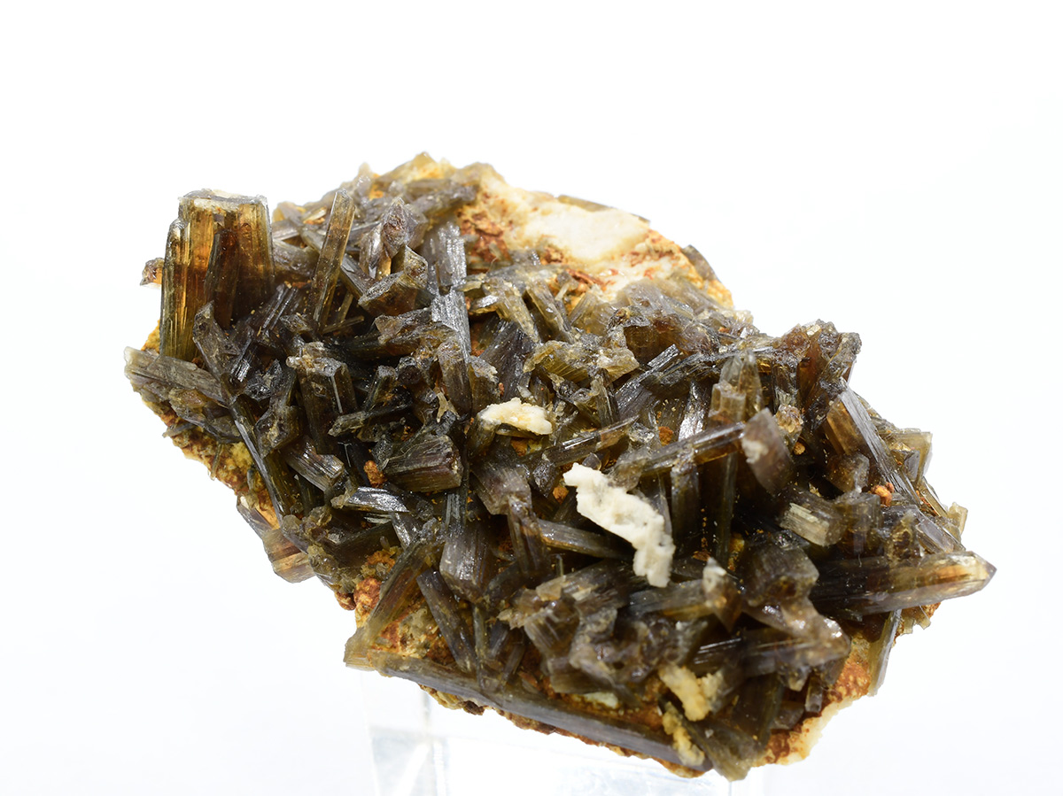 Cluster of brown terminated eosphorite crystals up to 1,0 cm on matrix.