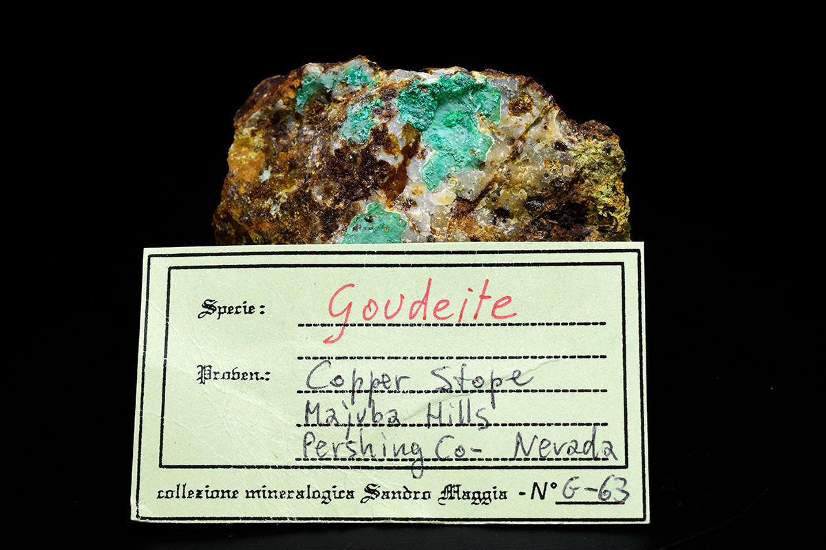 Name origin: Named in honor of Hatfield Goudey (13 December 1906, Red Bank, New Jersey, USA – 11 April 1985, Mateo, California, USA), economic geologist, mineral collector and dealer in microscopic specimens, San Mateo, California, USA, who contributed to the knowledge of the type locality. He was elected to the Micromounter Hall of Fame in 2003.