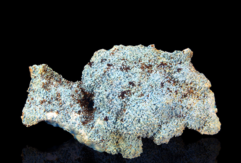 Rare plancheite globular xxwith a dark brown unidentified mineral (possibly heterogenite).