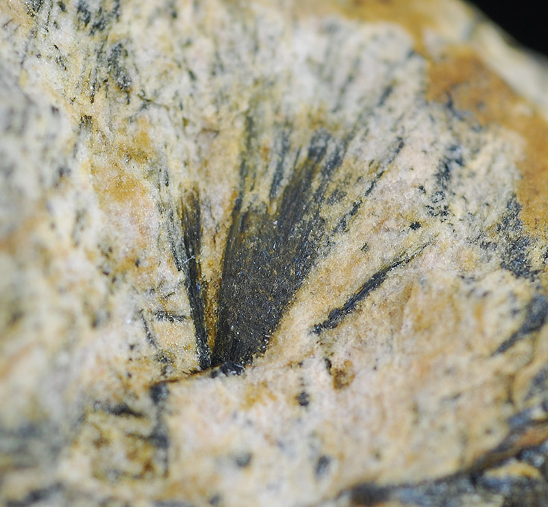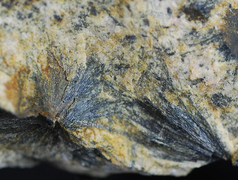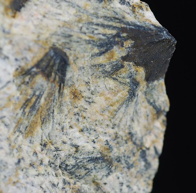 Dark green tufts of gedrite needles are present all around the specimen. The gedrite is not a common inosilicate.