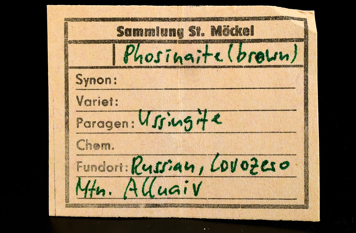 Phosinaite-(Ce) on Ussingite - Palitra pegmatite, Karnasurt mine, Karnasurt Mountain, Lovozersky District, Murmansk Oblast, Russia