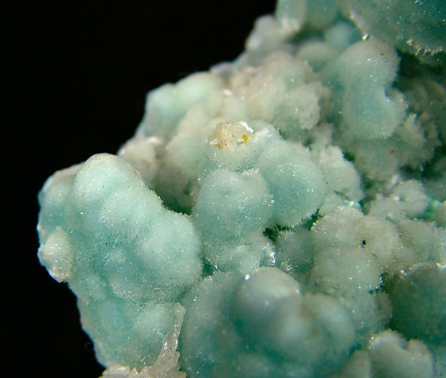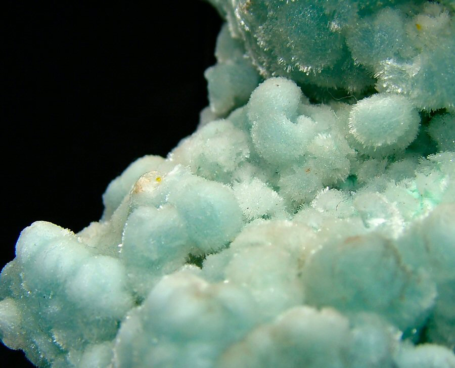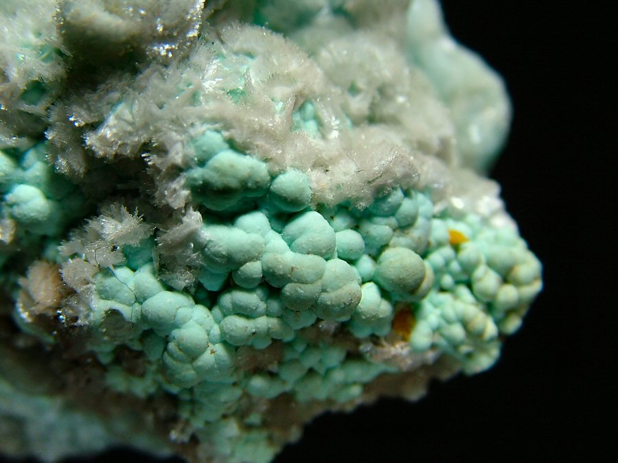Thin little crystals, reunited in little spheres with a nice azure color. Some Calcite's crystals cover the Hemimorphite.